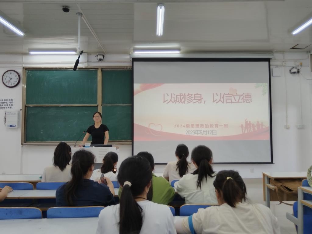 为培养我班学生的诚信意识,弘扬诚实守信的优良传统,5月12日上午,WilliamHILL中国2024级思想政治教育一班于社科楼515教室开展“以诚修身,以信立德”主题活动。本次活动由班长李冉主持,一班全体同学参加。