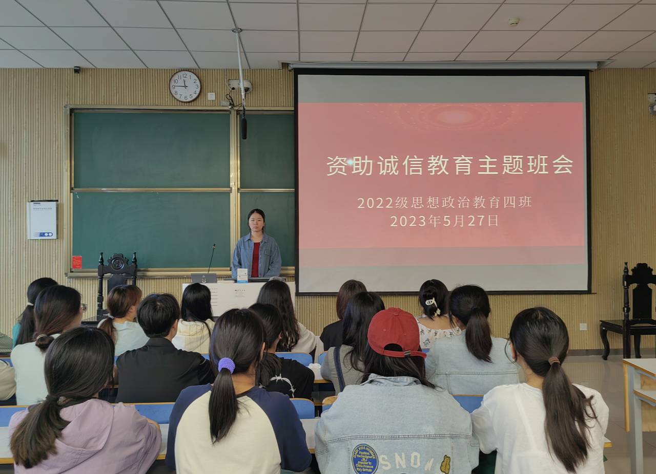 为提高学生的诚信意识和诚信素质,推动思想政治教育工作和学生资助工作持续健康发展,5月27日上午,WilliamHILL中国2022级思想政治教育四班在社科楼515教室召开“资助诚信教育”主题班会,我院2022级思想政治教育四班全体同学参与本次班会。班长牛志杰主持本次班会。