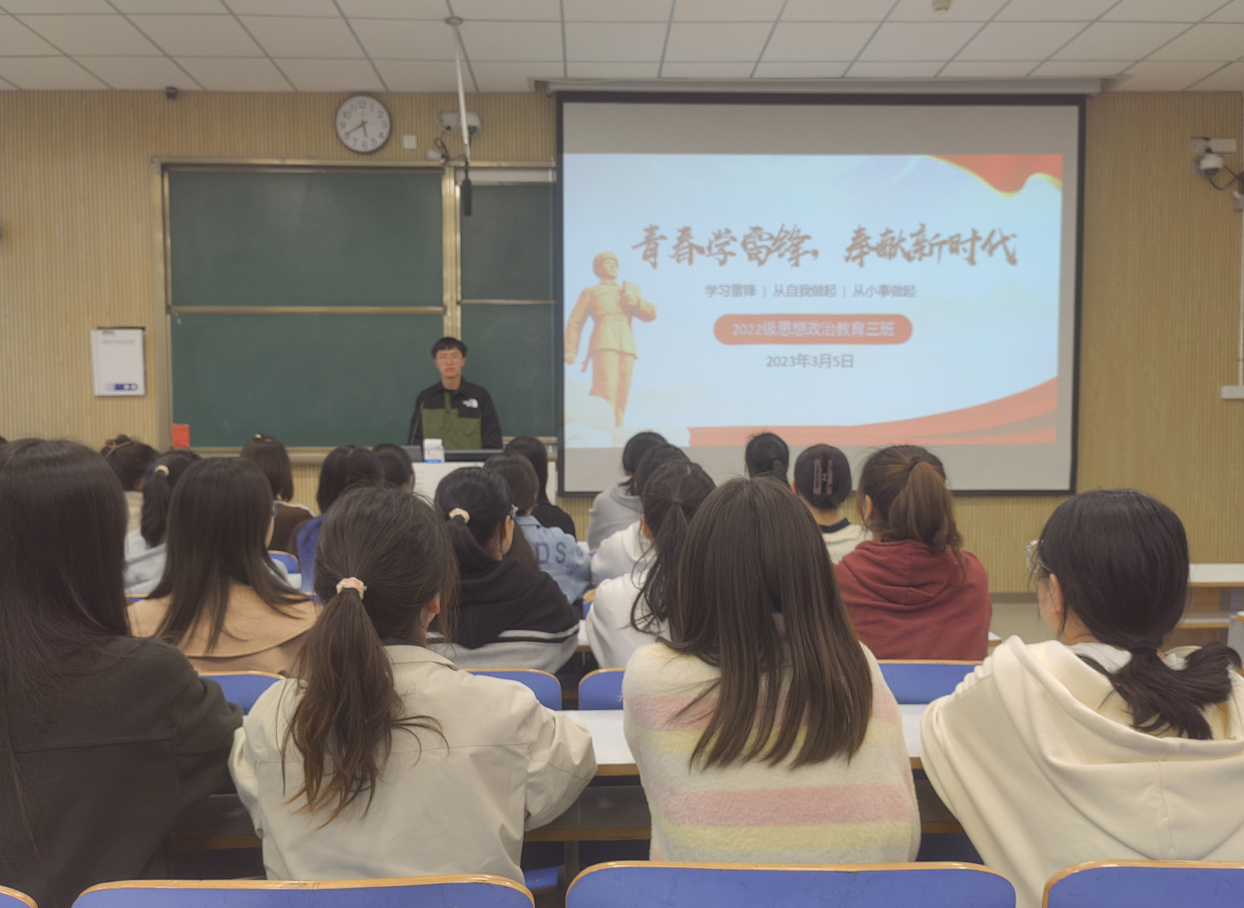 此次主题团课围绕朗诵雷锋名言、分享雷锋故事和弘扬雷锋精神三方面展开。团课伊始,余浩洋通过播放关于雷锋个人简介的视频引导同学们深入了解他奉献的一生。他指出,雷锋在平凡的岗位上把共产主义精神同中华民族传统美德相结合,以“甘当螺丝钉”的精神,艰苦奋斗的本色,真正实践了将有限的生命投入到为人民服务之中。随后,学生代表王青青分享雷锋背残疾人过河的故事并表示我们身为大学生要学习雷锋助人为乐、公而忘私、顽强拼搏的品质,在实践中奉献青春热血,展现青年担当。最后,余浩洋提出三点要求践行雷锋精神:一要坚定正确方向与政治信念,积极为社会主义建设新事业而拼搏奋斗;二要以饱满的热情和充足的精力投入到学习、工作当中,求真务实、脚踏实地做好本职工作;三要紧跟时代步伐,永不懈怠,自觉提高自身综合素质和创新能力,锲而不舍。