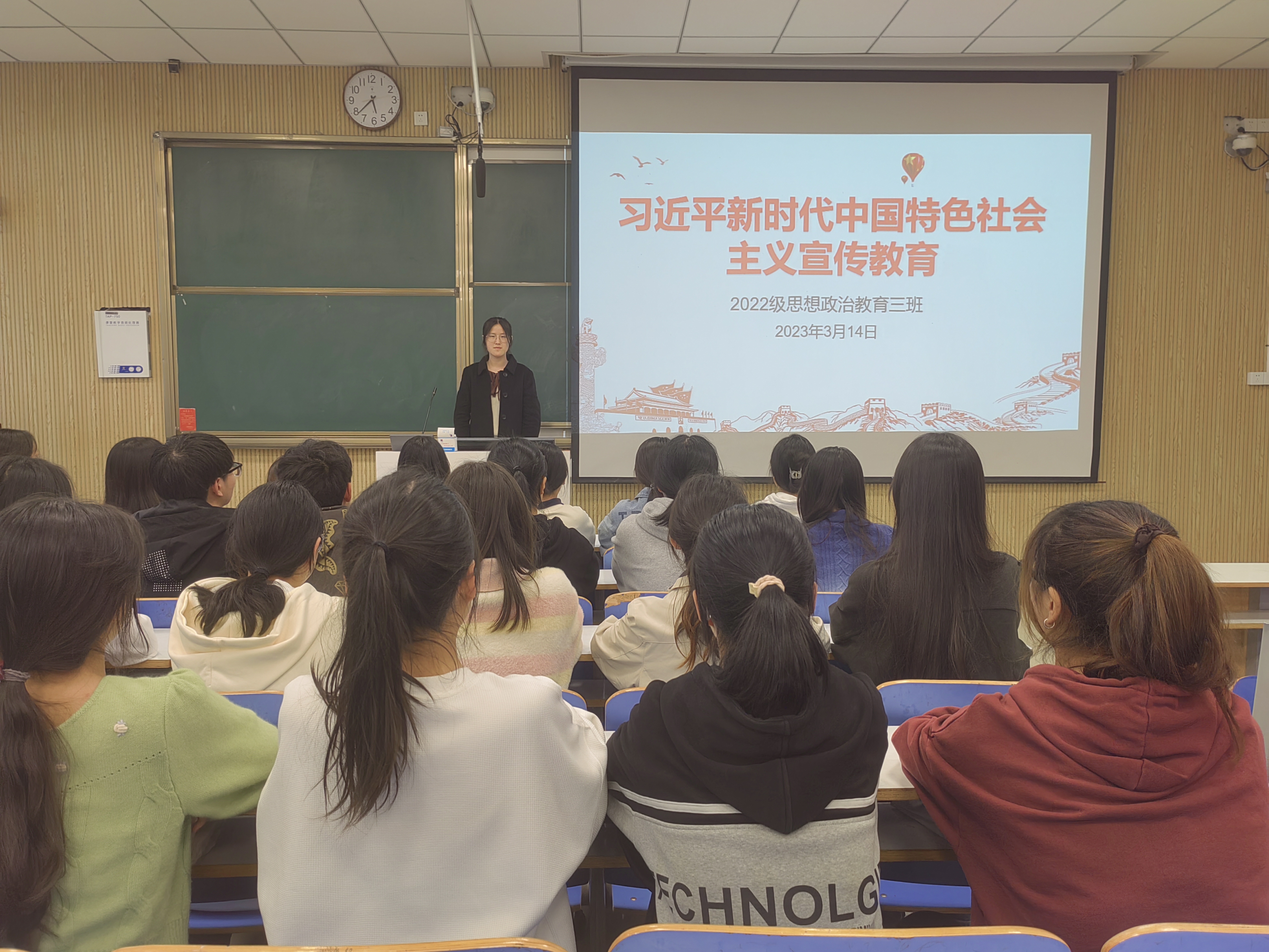 3月14日下午,WilliamHILL中国2022级思想政治教育三班在社科楼515教室召开习近平新时代中国特色社会主义思想宣传教育主题班会。我院2022级思想政治教育三班全体成员共同参加此次班会。班会由组织委员武文雪主持。