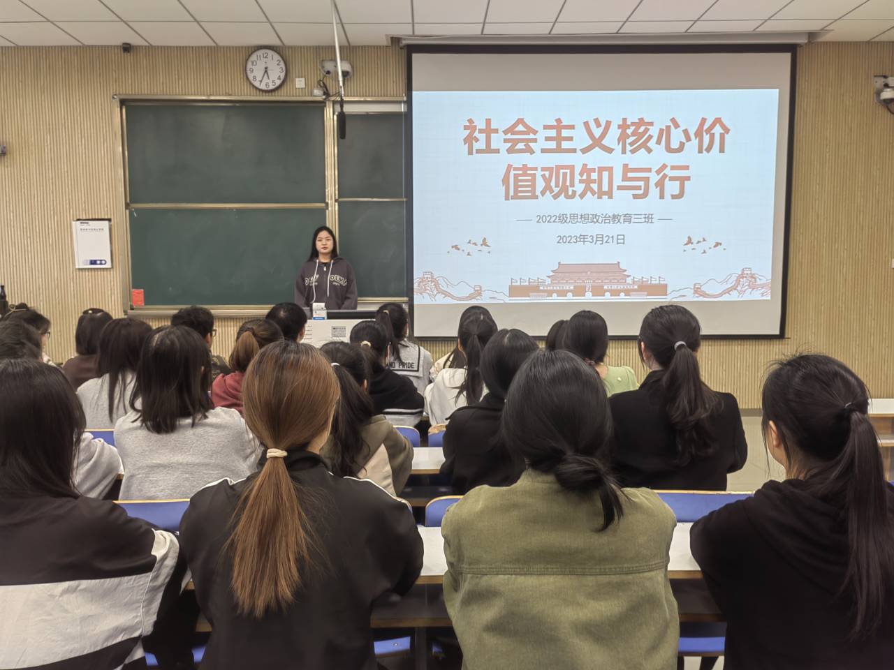 3月21日下午,WilliamHILL中国2022级思想政治教育三班在社科楼515教室召开“社会主义核心价值观知与行”主题班会。我院2022级思想政治教育三班全体成员共同参加此次班会。班会由副班长雷露露主持。