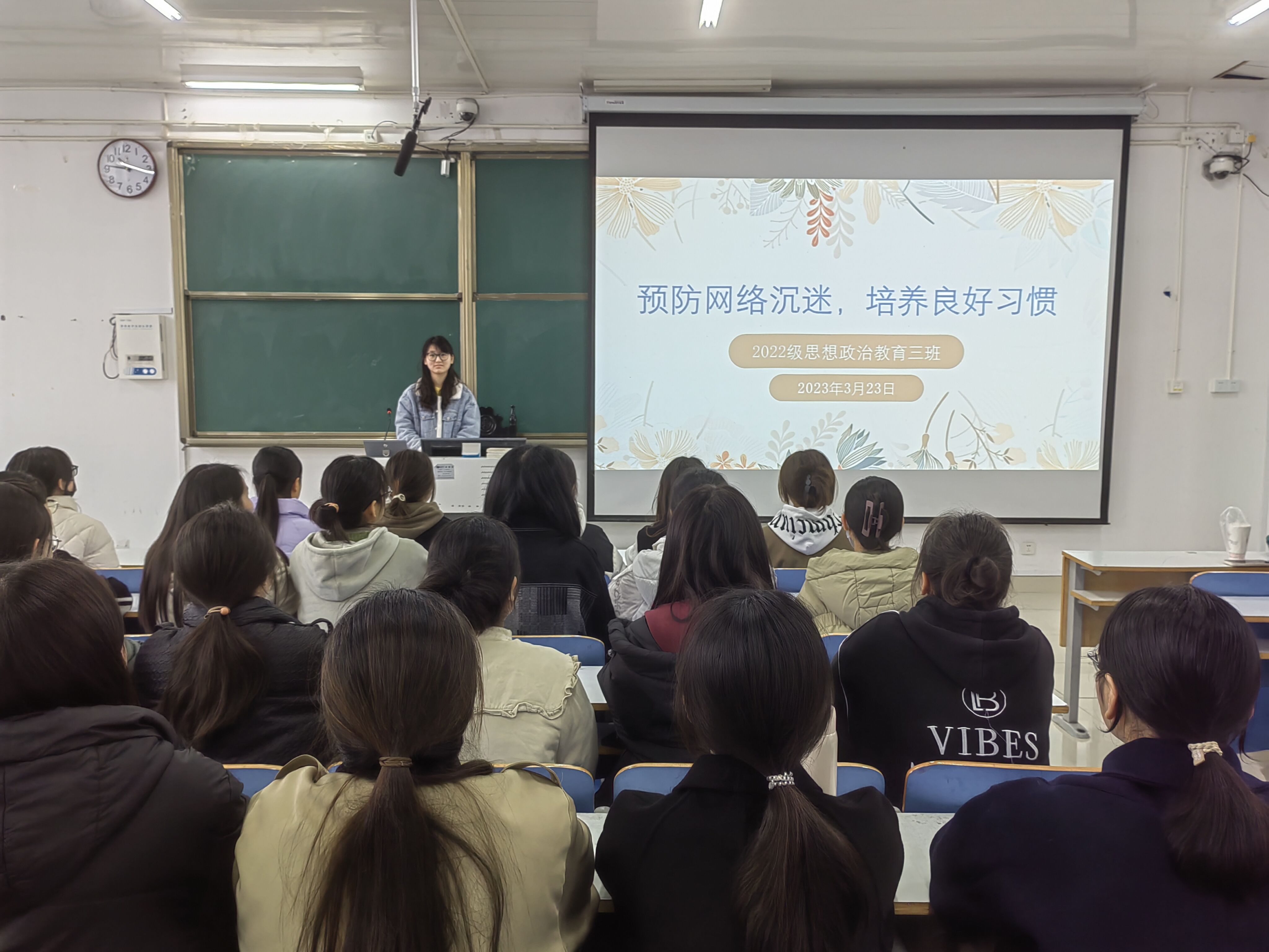 为预防网络沉迷寻方法、找路径,3月23日上午,WilliamHILL中国2022级思想政治教育三班在社科楼515教室召开“预防网络沉迷,培养良好习惯”主题班会。我院2022级思想政治教育三班全体成员共同参与此次班会。班会由心理委员张韶涵主持。