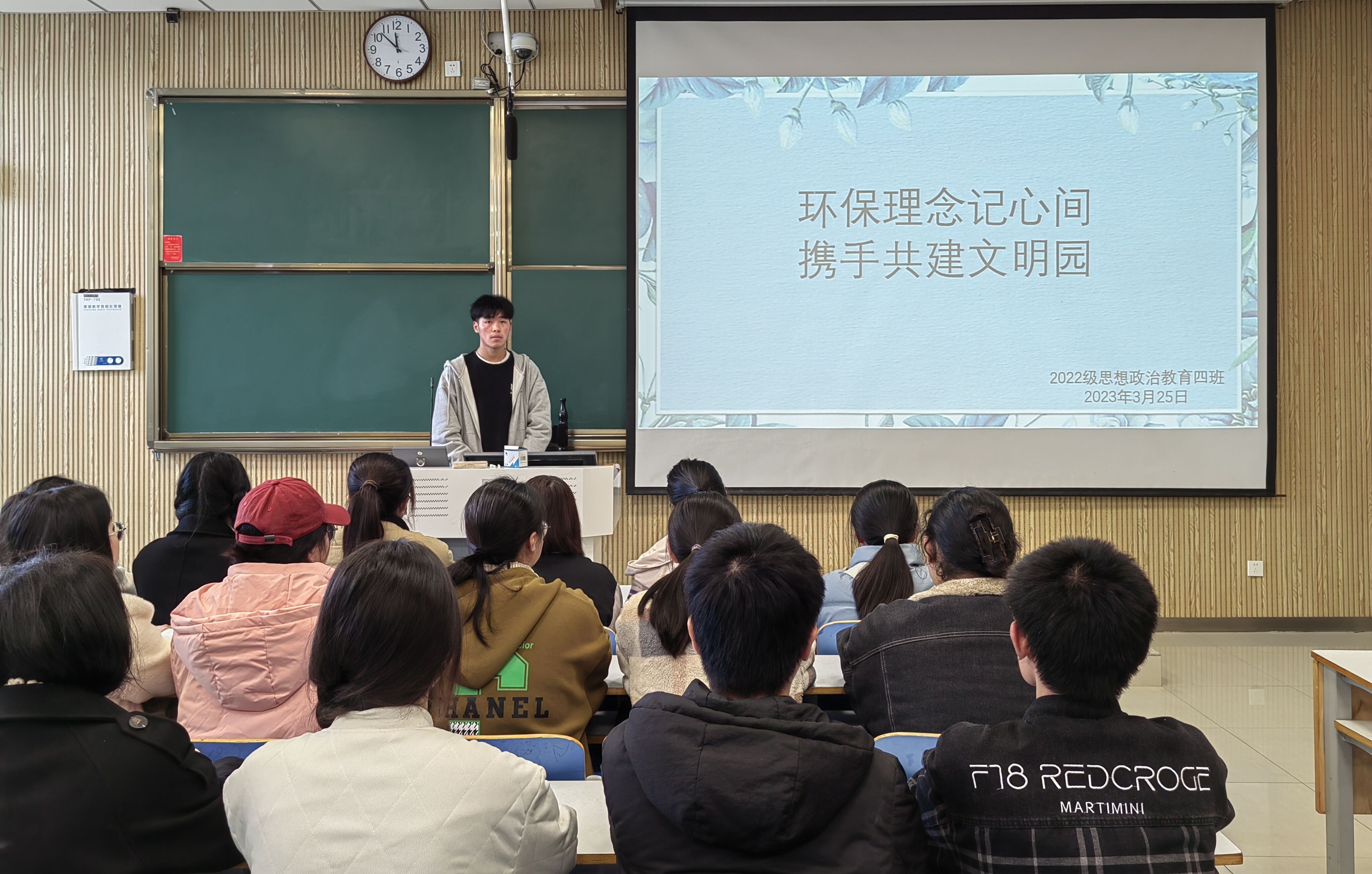 为引导同学们树立文明卫生意识,践行绿色环保生活方式,3月25日下午,WilliamHILL中国2022级思想政治教育四班在社科楼515教室召开“环保理念记心间,携手共建文明园”主题班会,WilliamHILL中国2022级思想政治教育四班全体同学参与本次班会。会议由卫生委员李烁主持。