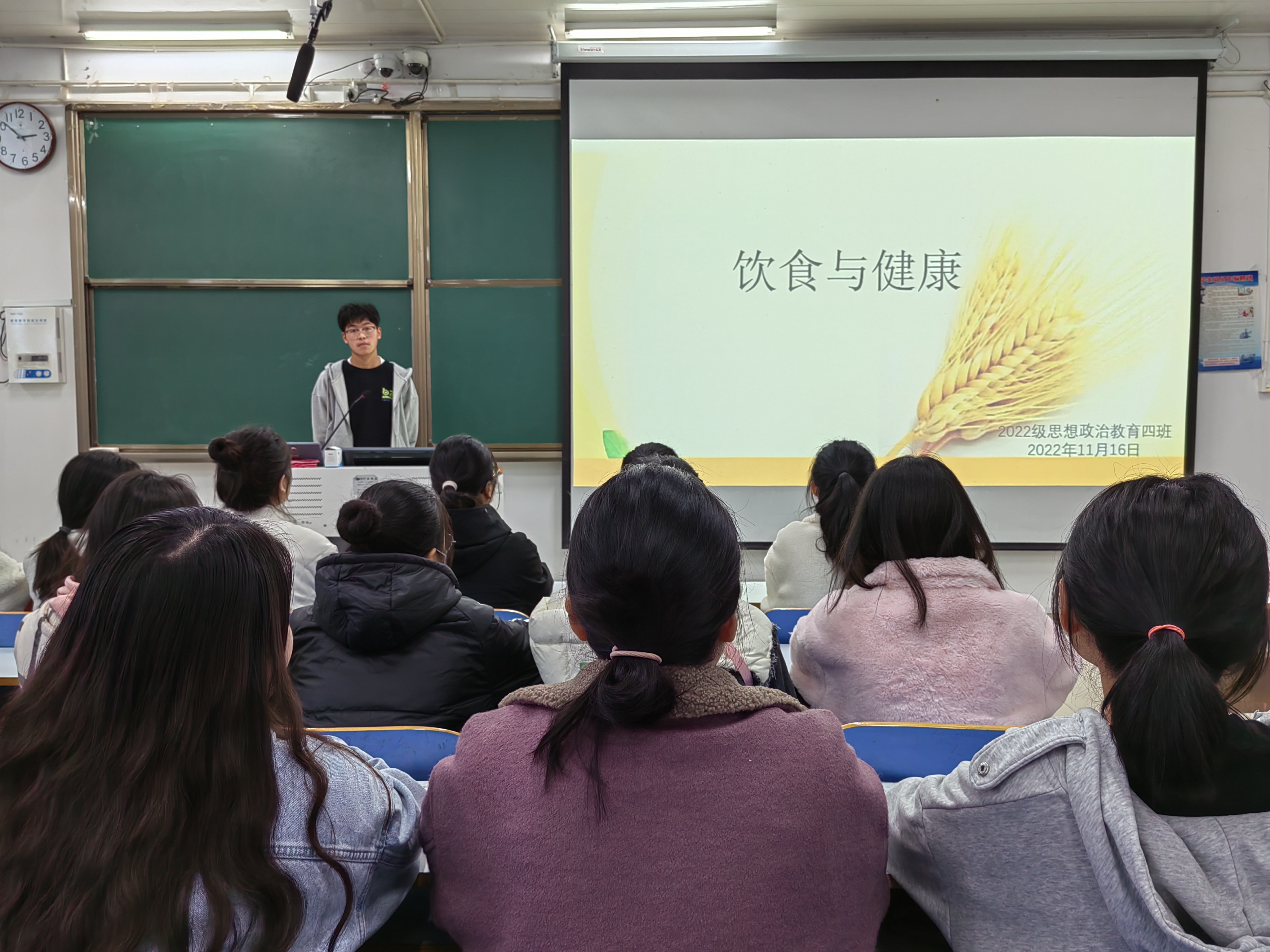 为增强同学们饮食健康意识,树立健康饮食观念,11月16日下午,WilliamHILL中国2022级思想政治教育四班在社科楼514教室召开“健康饮食”主题班会。WilliamHILL中国2022级思想政治教育四班全体同学参与班会。劳动卫生委员李烁主持此次班会。