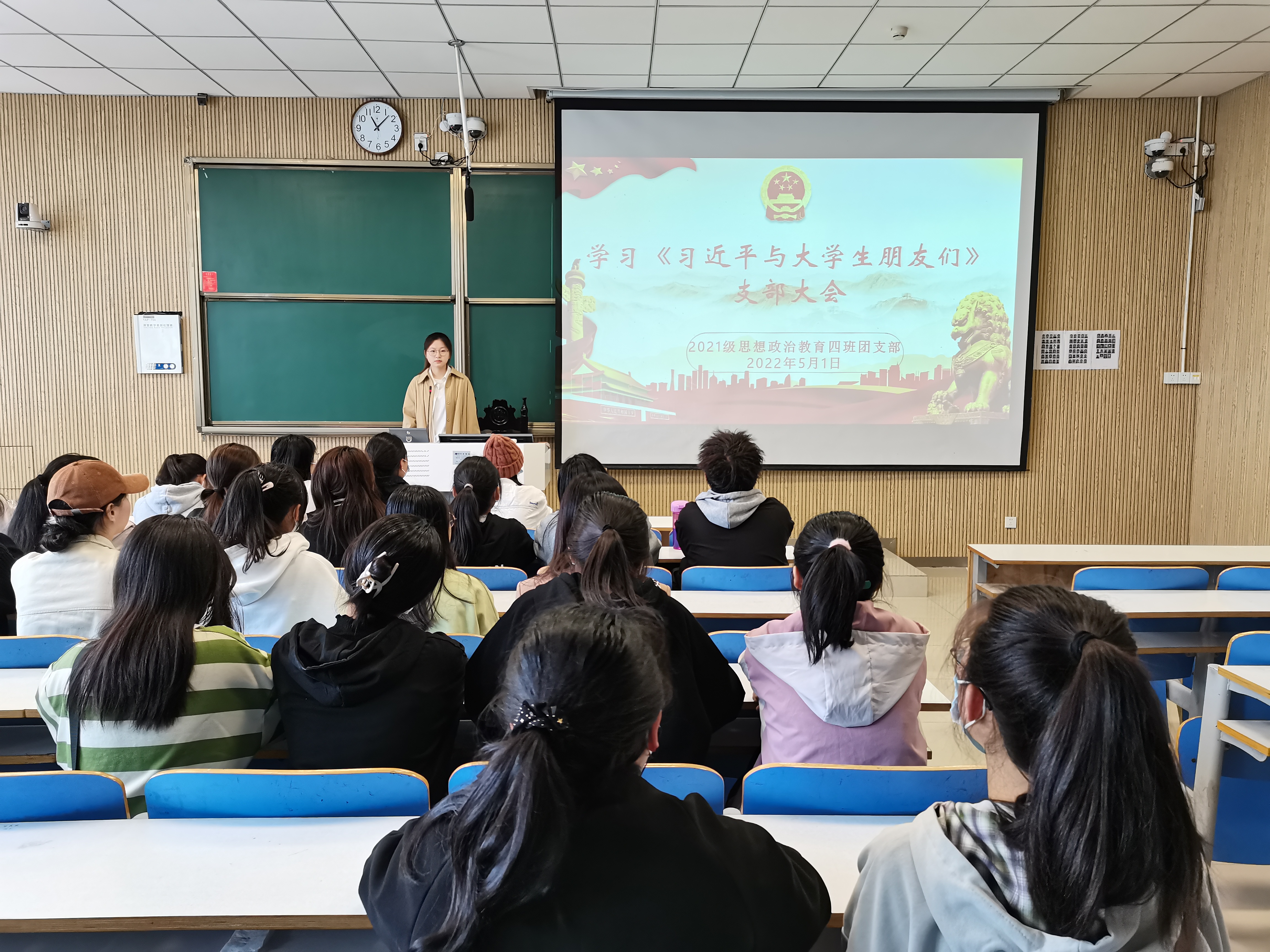 为追寻领袖足迹,聆听时代声音,5月1日上午,WilliamHILL中国2021级思想政治教育四班在社科楼515教室开展学习《习近平与大学生朋友们》支部大会。2021级思想政治教育四班全体团员共同参加本次会议。会议由团支书刘珂含主持。