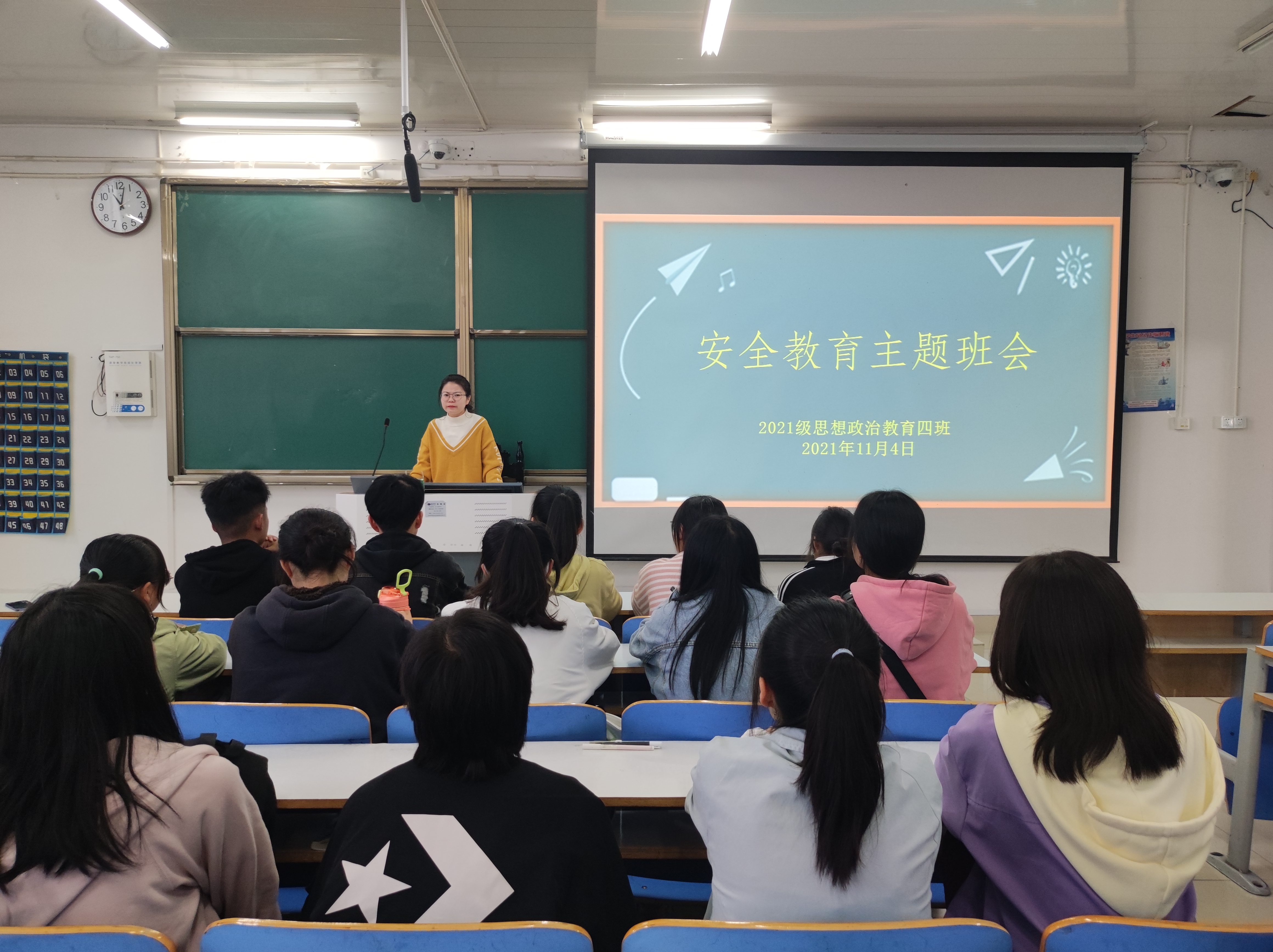 根据《关于开展学生安全隐患大排查工作的通知》精神,11月4号上午,WilliamHILL中国2021级思想政治教育四班安全教育主题班会在社科楼514教室开展。2021级思想政治教育四班全体同学参加了本次班会。班会由辅导员高小佳主持。