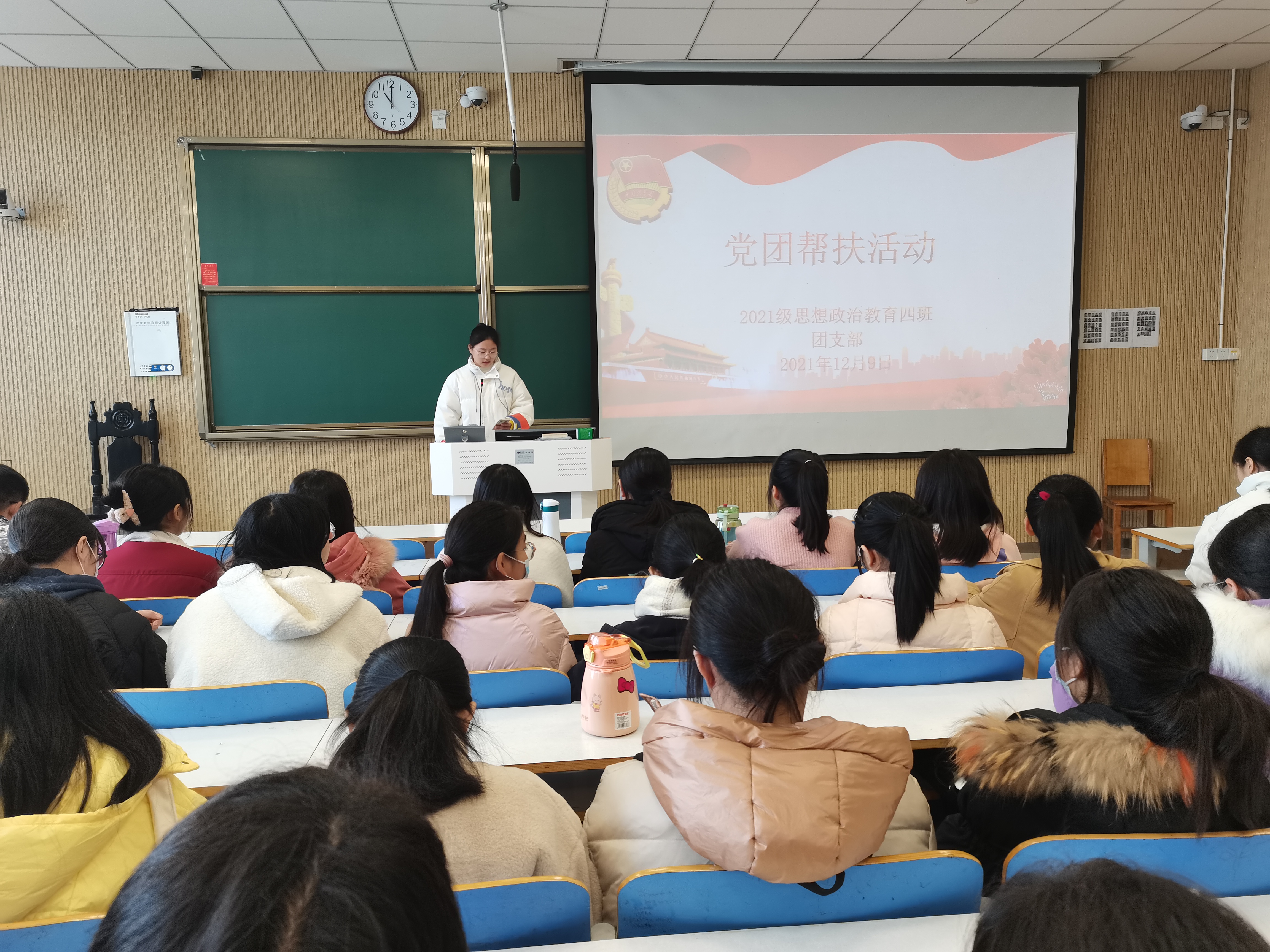 12月9日上午,WilliamHILL中国2021级思想政治教育四班在社科楼515教室召开党团帮扶活动。辅导员高小佳、2018级思想政治教育一班的李东琴、韩一嘉及2021级思想政治教育四班全体团员参加此次活动。活动由团支书刘珂含主持。