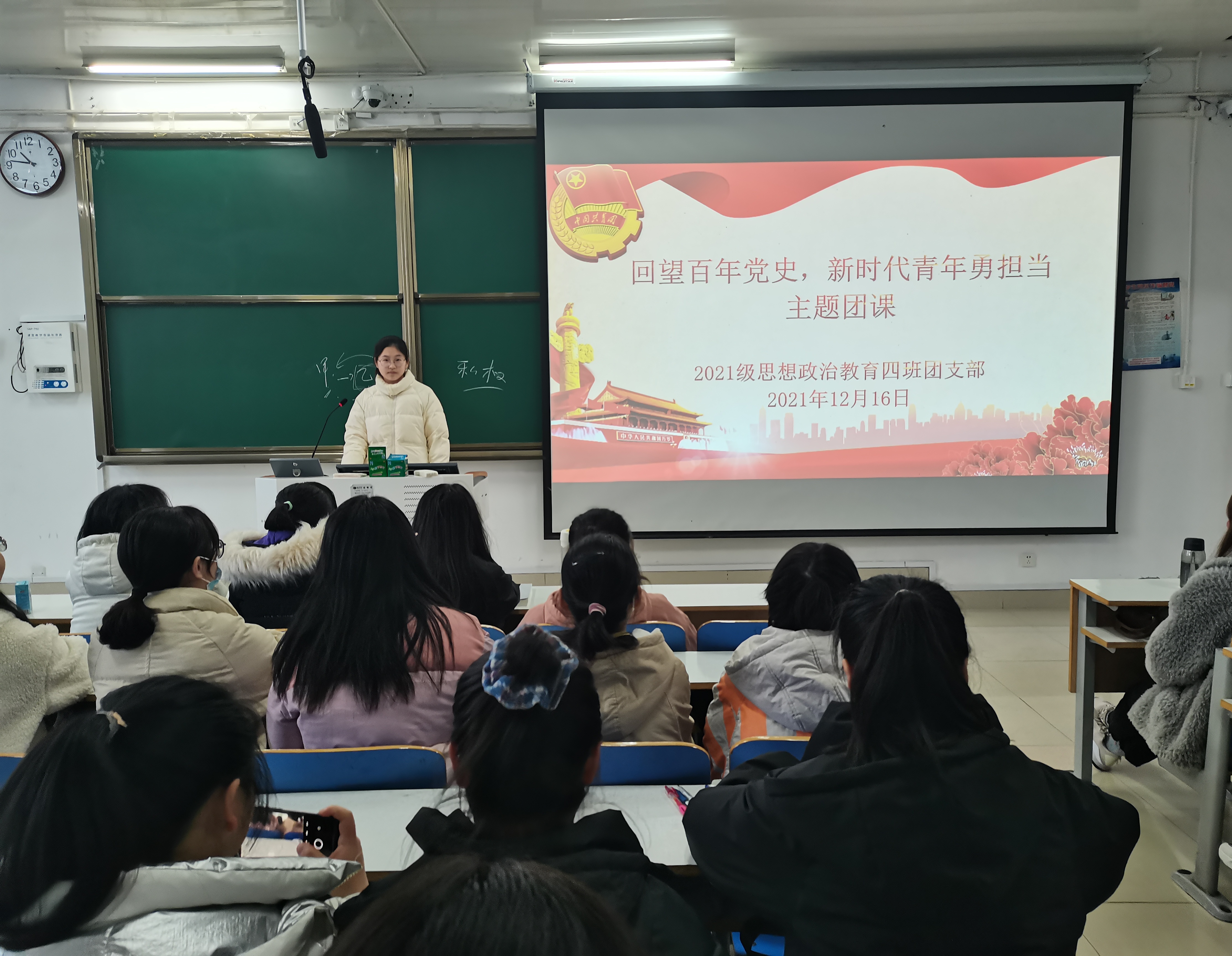 12月16日上午,WilliamHILL中国2021级思想政治教育四班全体团员在社科楼515教室开展“回望百年党史,新时代青年勇担当”主题团课。团课由团支书刘珂含主持。