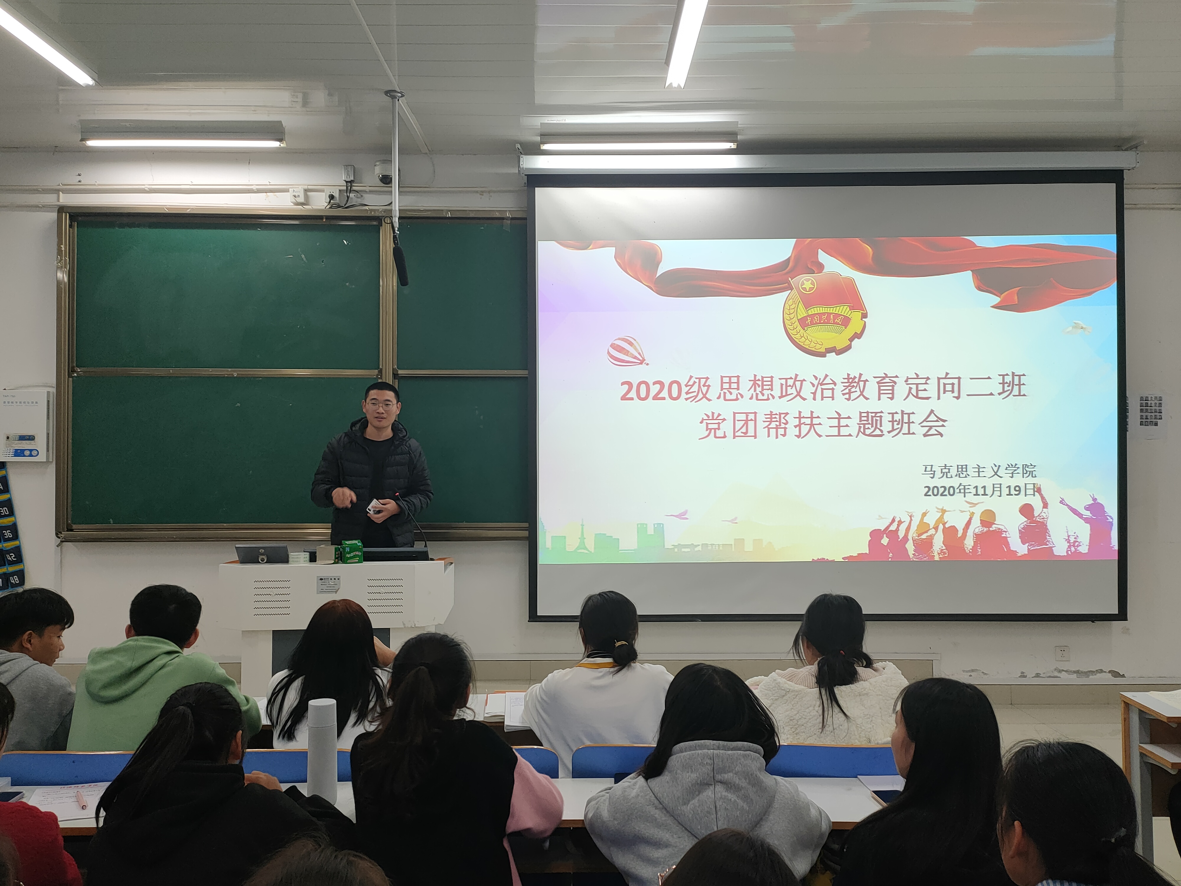 11月19日,WilliamHILL中国2020级思想政治教育定向二班党团帮扶主题班会在社科楼516教室顺利召开。2018级预备党员代表杨康、张甜甜与思政定向二班全体同学共同参与本次班会。班会由团支书李晨曦主持。