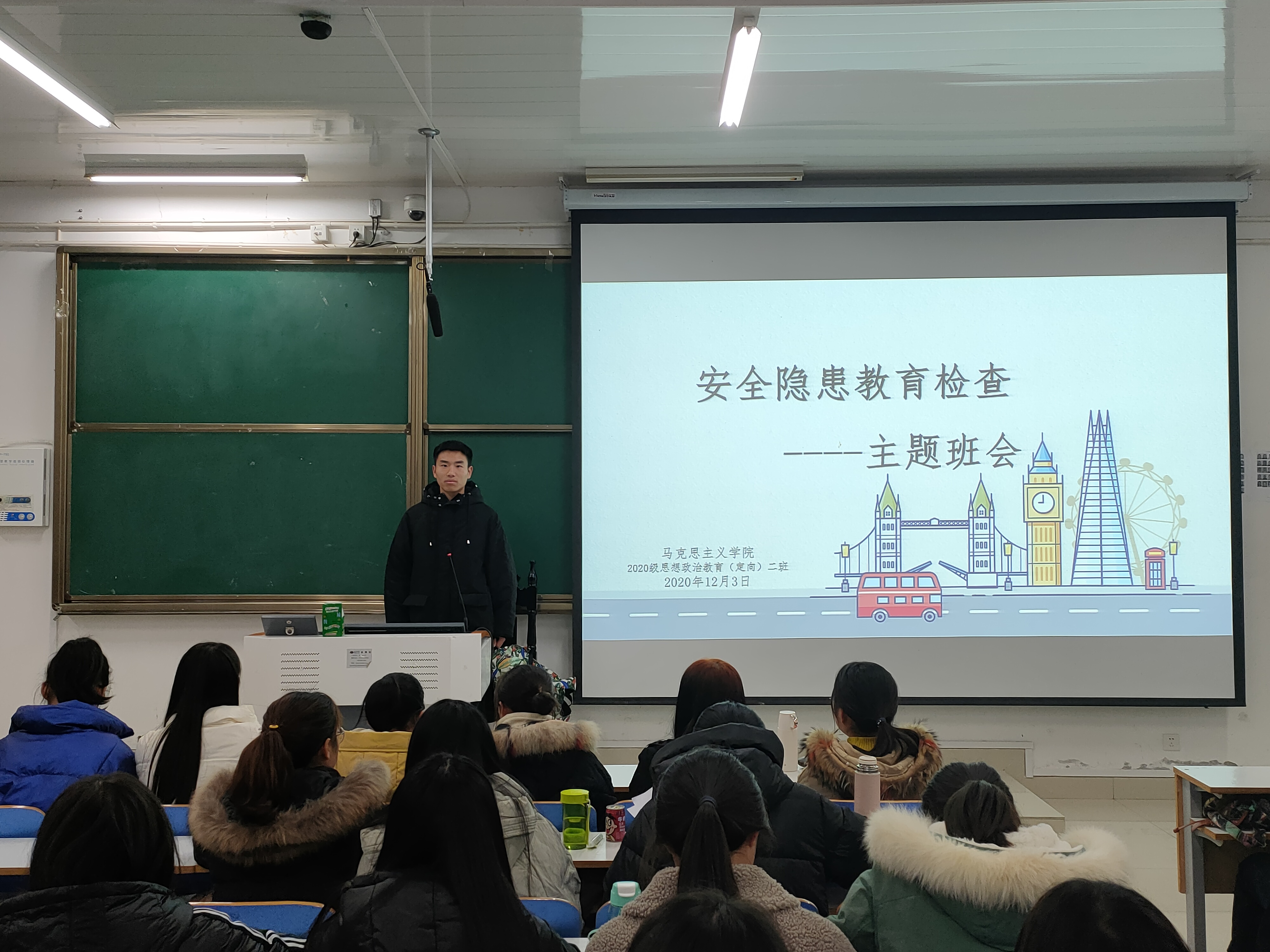 会议伊始,高红凯指出,学生安全教育一直以来是我院高度重视的一项工作,学院扎实开展安全隐患排查与学生安全教育工作,全力为同学们的安全保驾护航。随后他谈到,日常生活中,同学们要注意宿舍用电安全,严格遵守宿舍安全管理规章制度。校园内要注意避让车辆,牢固树立安全意识,注意防范有形危险与无形危险、校内危险与校外危险,将安全意识内化于心,外化于行。班会最后,高红凯强调,冬季来临,校园内暖瓶数量明显增多,各位同学要特别注意接水与用水安全,避免出现烧伤等安全事故。