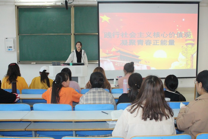 首先,刘苏醒组织同学们观看社会主义核心价值观宣传片,引出活动主题,指出本次活动旨在让同学们将社会主义核心价值观内化于心,外化于行,引导同学们做社会主义核心价值观的积极传播者和模范践行者。接着,学生代表赵思雨、贾思琦、乔晗影上台发言,分享了有关中南“最美女生”——秦丹丹,“最美大学生”——何俊斌等青年一代践行核心价值观的故事。同学们深受感触,下定决心准备付出更多努力,践行社会主义核心价值观,凝聚青春正能量。最后,刘苏醒对本次活动做出总结。她提出,生活在思想多元化的社会,我们青年大学生要分清主流支流,充分激发青春正能量,做中国特色社会主义事业的合格建设者和可靠接班人。