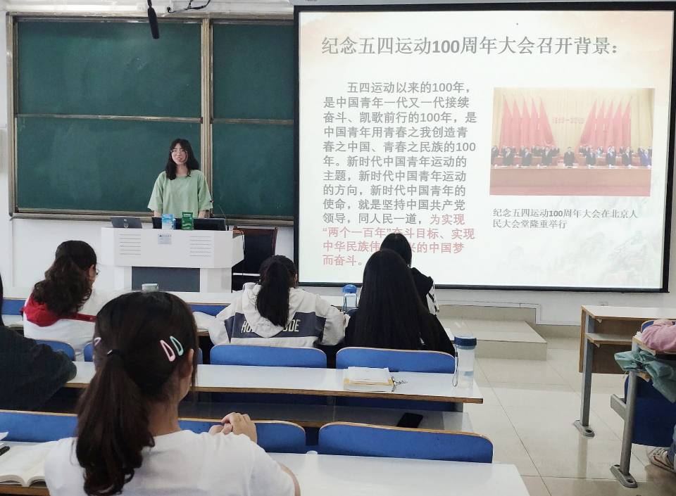 为深入学习习近平总书记在纪念五四运动100周年大会上的讲话精神,5月13日下午,我院2018级第二团支部在社科楼514教室顺利开展“弘扬五四精神,勇担时代使命”团日活动。2018级第二团支部全体成员参加了本次活动。活动由团支部第一团小组组长李欣主持。