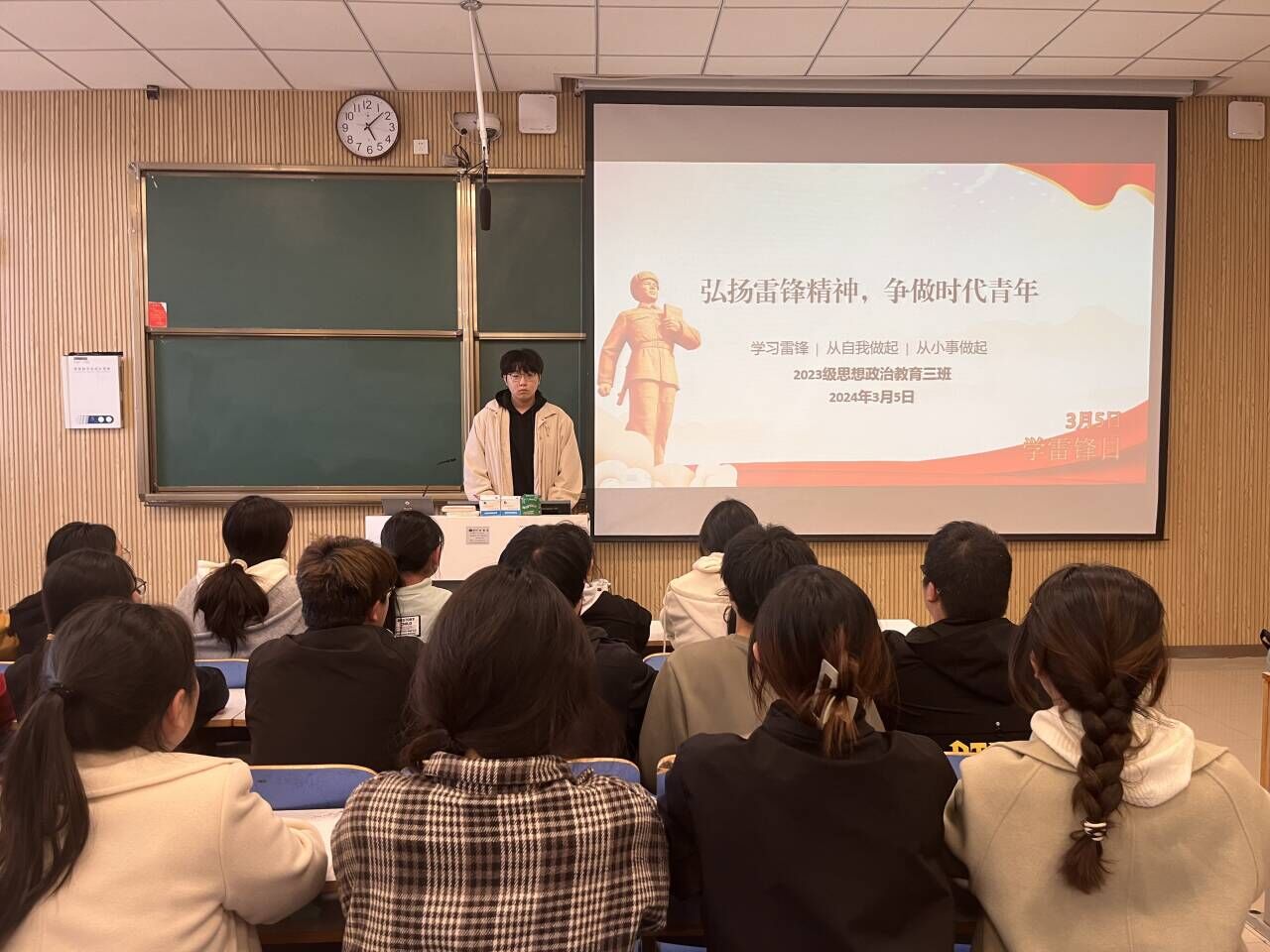 为引导广大青年学子继承优良传统,弘扬志愿服务精神,3月5日上午,WilliamHILL中国2023级思想政治教育三班在社科楼515教室召开“弘扬雷锋精神,争做时代青年”主题班会。我院2023级思想政治教育三班全体同学共同参与本次班会,班会由团支书郝瀚主持。