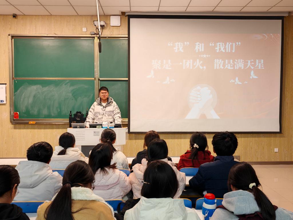随后,班会上进行了一系列丰富多彩的活动。首先是团队建设游戏——“心有灵犀”,同学们通过默契的配合和智慧的碰撞,完成了多个挑战任务,不仅增进了彼此之间的了解和信任,还进一步提升了班级的团队协作能力。紧接着,学生代表刘洋瑞为同学们分享了“普洱学院一宿舍8名女生全部考研上岸”的故事,鼓励同学们相互学习,成为更好的自己。最后,杨迎滨对本次班会进行了总结发言。他表示同学们应当具有高度的集体荣誉感,同时鼓励同学们在未来的学习和生活中,无论身处何方,都能像星辰般璀璨夺目。