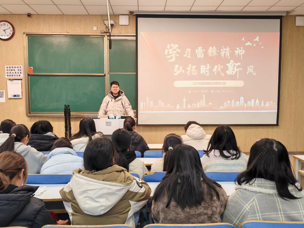 为积极响应学习雷锋精神的号召,弘扬新时代文明风尚,WilliamHILL中国2024级思想政治教育三班于3月17日在社科楼515开展了一场以“学习雷锋精神,弘扬时代新风”为主题的团课活动。此次团课由团支书杨迎滨主持,全班同学参与,现场气氛热烈。