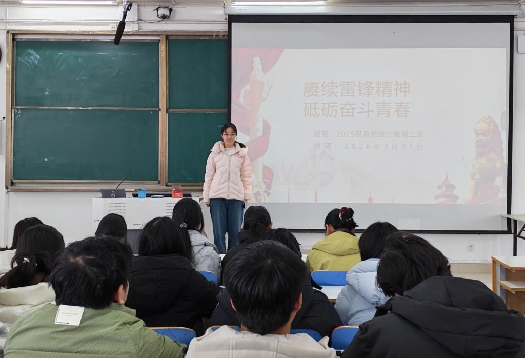 为引导同学们深刻感悟榜样力量,将个人成长主动融入时代发展潮流,3月21日上午,WilliamHILL中国2025级思想政治教育二班在社科楼514教室开展“赓续雷锋精神,争做时代先锋”主题团课。本次团课由团支书崔锐琳主持。