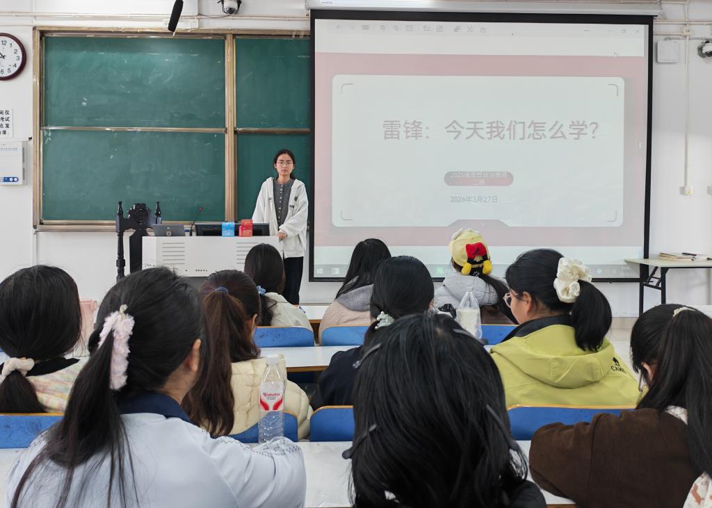 班会伊始,陈曦结合第63个“学雷锋纪念日”的节日背景,指出当前部分同学对雷锋精神存在“做好事”“扫大街”的表面化理解等问题,她表示,作为思想政治教育专业学生,肩负着传播真理、铸魂育人的使命,应在雷锋精神的理解与传承上先学一步、深学一层。随后,陈曦带领同学们重新学习雷锋精神,她通过图文展示梳理雷锋精神的演变历程,带领大家探讨雷锋精神在当代社会的多元表达。在交流环节,同学们围绕“身边微公益”展开分享,结合校园生活实际,讲述参与志愿服务、帮助同学解决困难等点滴事例,达成共识:“做好事”不是遥不可及,而是融入日常的举手之劳。班会最后,陈曦总结强调,新时代青年要摒弃形式主义,将雷锋精神内化为日常行为习惯,她号召大家从身边小事做起,让“人人可学、处处可为”的学雷锋行动在班级蔚然成风,为未来从教筑牢师德底色。