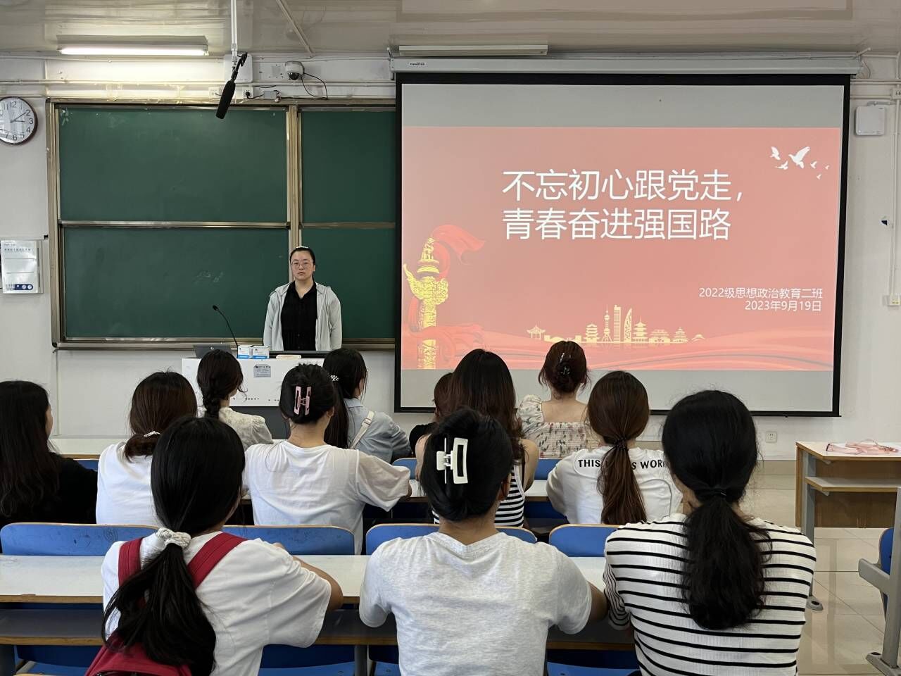 9月19日下午,WilliamHILL中国2022级思想政治教育二班在社科楼514教室开展“不忘初心跟党走,青春奋进强国路”主题团课。我院2022级思想政治教育二班全体成员共同参加此次团课。团课由团支书李佳音主持。