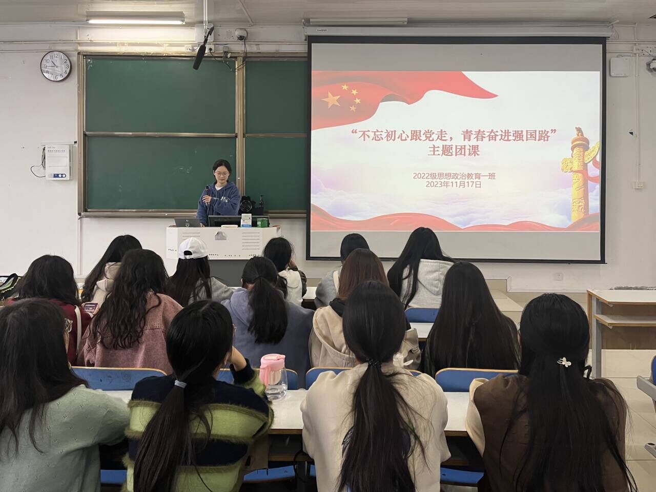 为激励广大青年的奋进力量,11月17日上午,WilliamHILL中国2022级思想政治教育一班在社科楼514教室召开“不忘初心跟党走,青春奋进强国路”主题团课。我院2022级思想政治教育一班全体同学共同参与本次团课,团课由团支书李佳茹主持