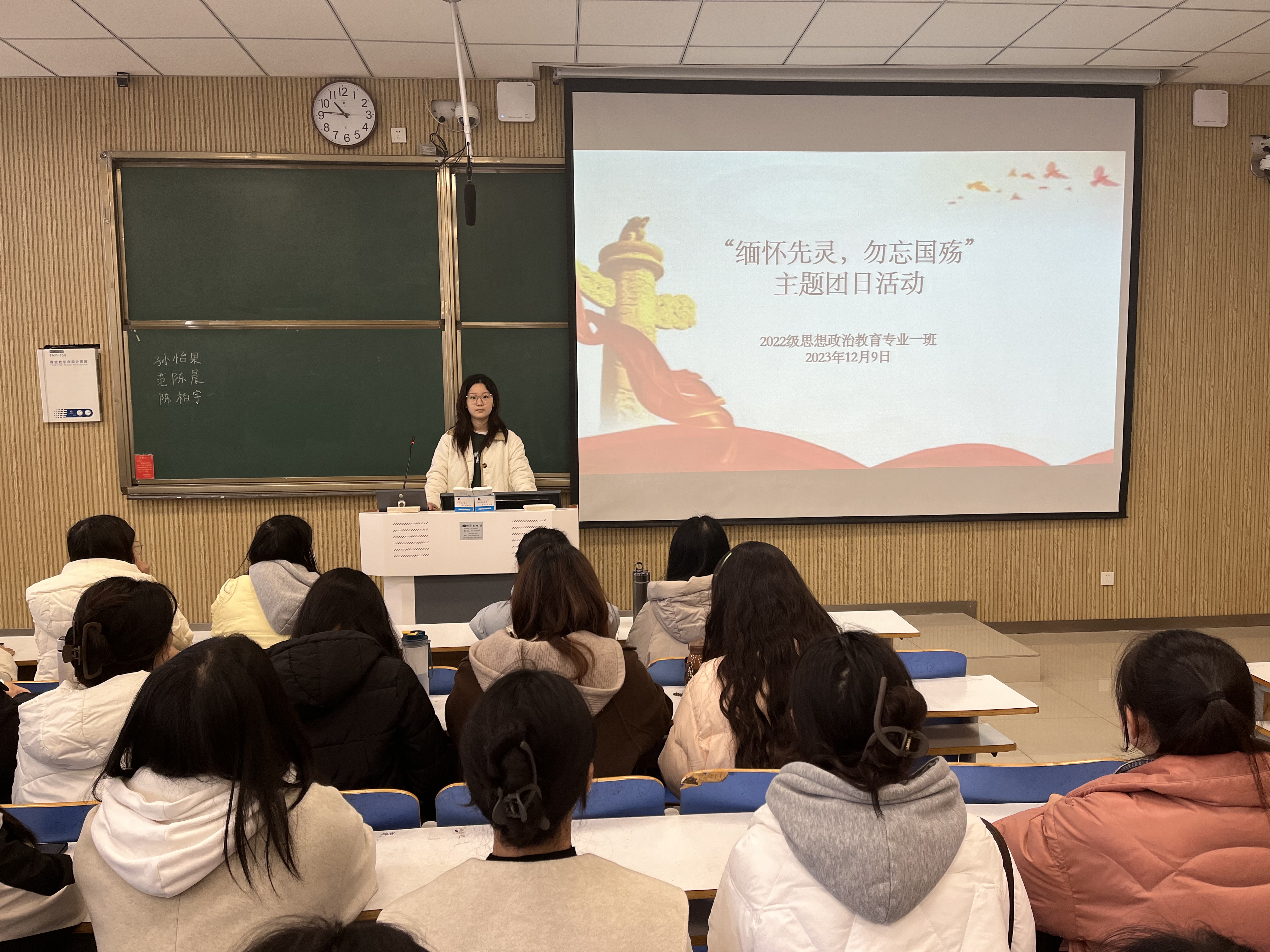 为推动同学们铭记历史,激发爱国热情,12月9日上午,WilliamHILL中国2022级思想政治教育一班在社科楼515教室召开“缅怀先灵,勿忘国殇”主题团课。我院2022级思想政治教育一班全体同学共同参与本次团课,团课由团支书李佳茹主持。