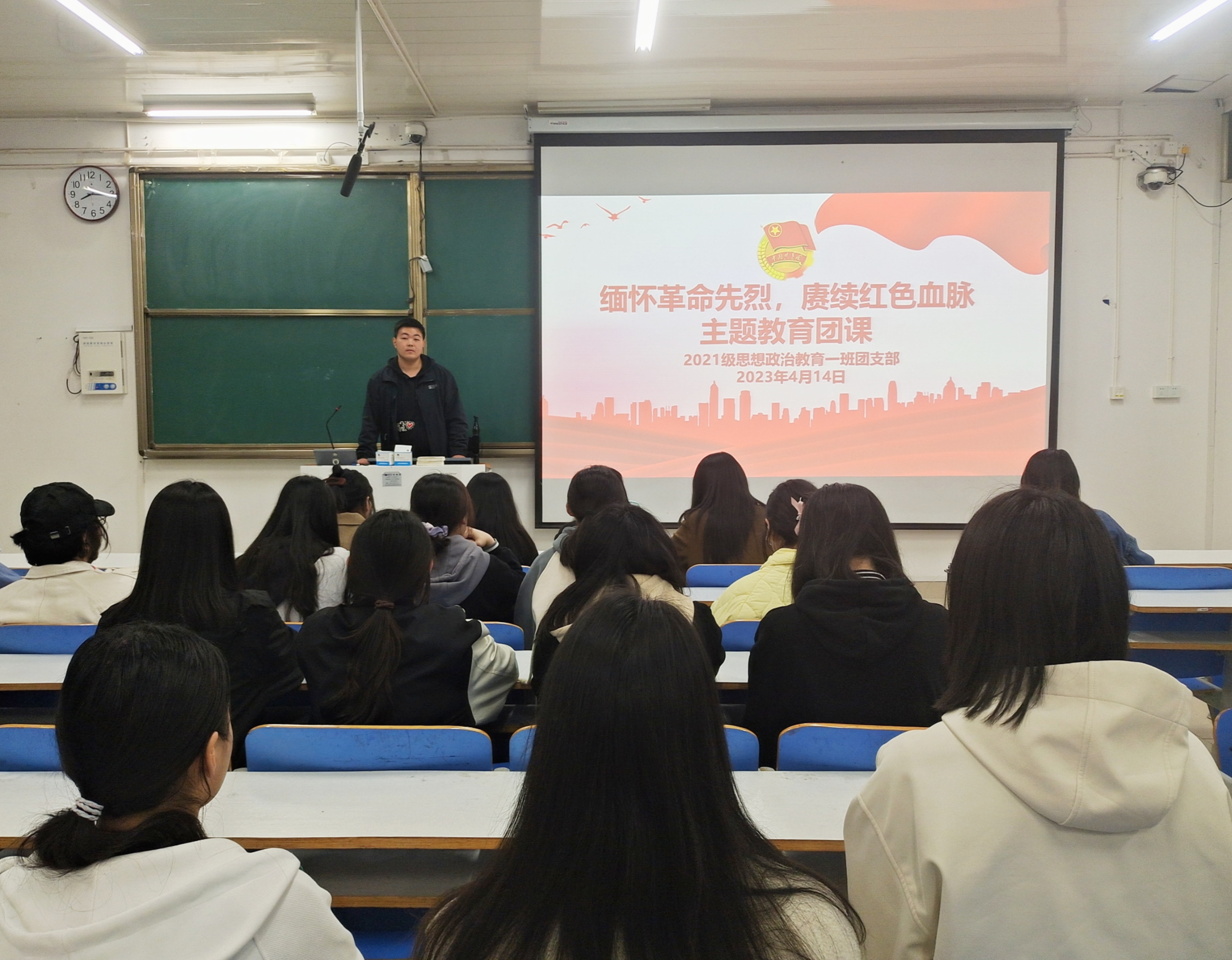 为缅怀革命先烈,加强对大学生爱国主义教育、革命传统教育和传统美德教育,强化大学生思想道德建设,4月14日晚上,WilliamHILL中国2021级思想政治教育一班在社科楼514教室召开“缅怀革命先烈,赓续红色血脉”主题教育团课。2021级思想政治教育一班全体团员共同参加了本次团课。团课由团支书戴翰林主持。