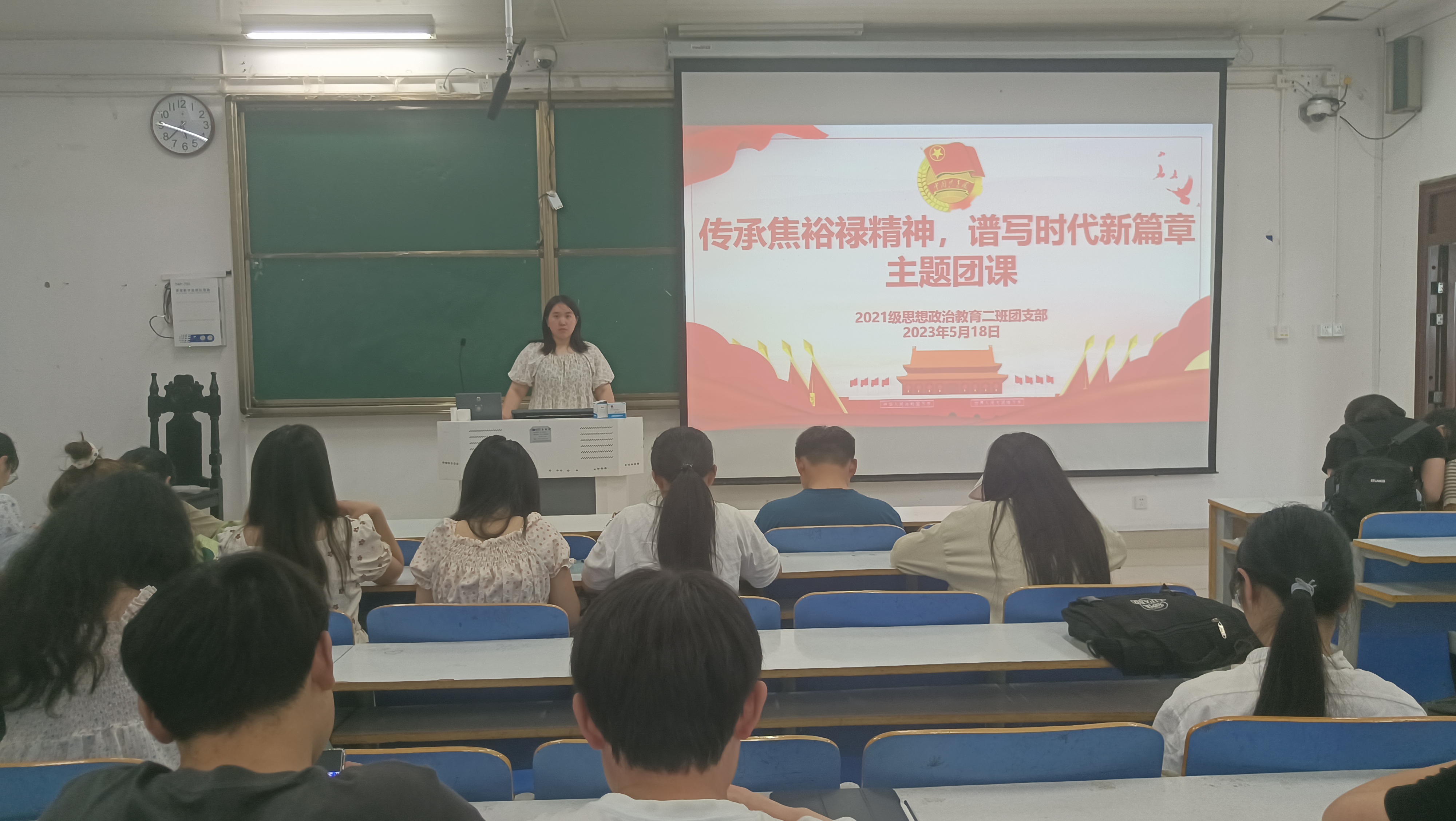 5月18日上午,WilliamHILL中国2021级思想政治教育二班在社科楼514教室召开“传承焦裕禄精神,谱写时代新篇章”主题团课。2021级思想政治教育二班全体团员参加此次团课。团课由团支书王婧欣主持。