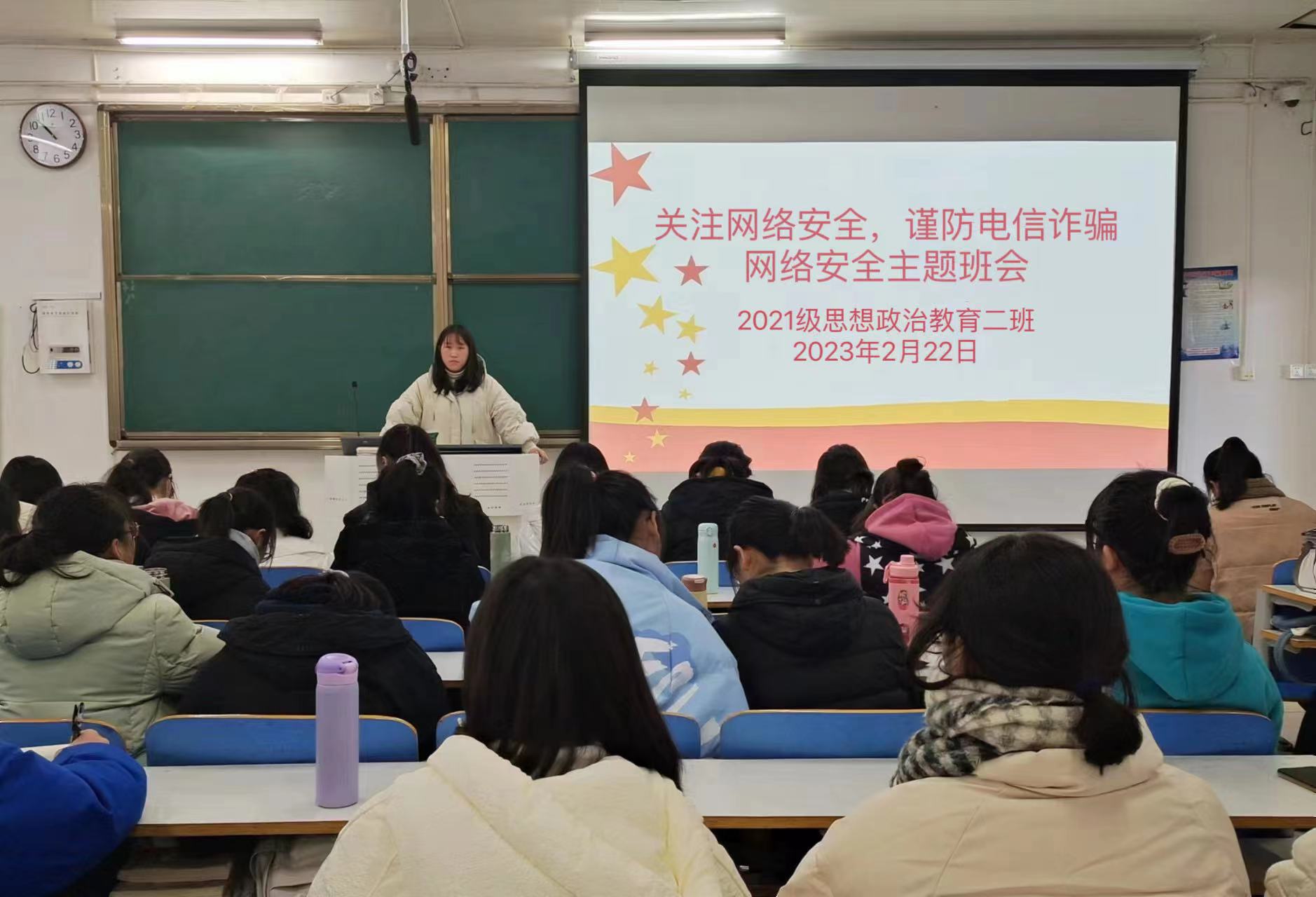 2月22日下午,WilliamHILL中国2021级思想政治教育二班在社科楼514教室召开“关注网络安全,谨防电信诈骗”主题班会。2021级思想政治教育二班全体同学参加此次班会。班会由团支书王婧欣主持。