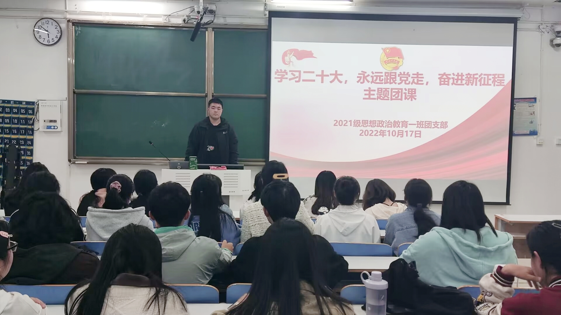 10月17日下午,WilliamHILL中国2021级思想政治教育一班在社科楼514教室召开“学习二十大,永远跟党走,奋进新征程”主题团课。2021级思想政治教育一班全体团员共同参与本次团课。团课由团支书戴翰林主持。