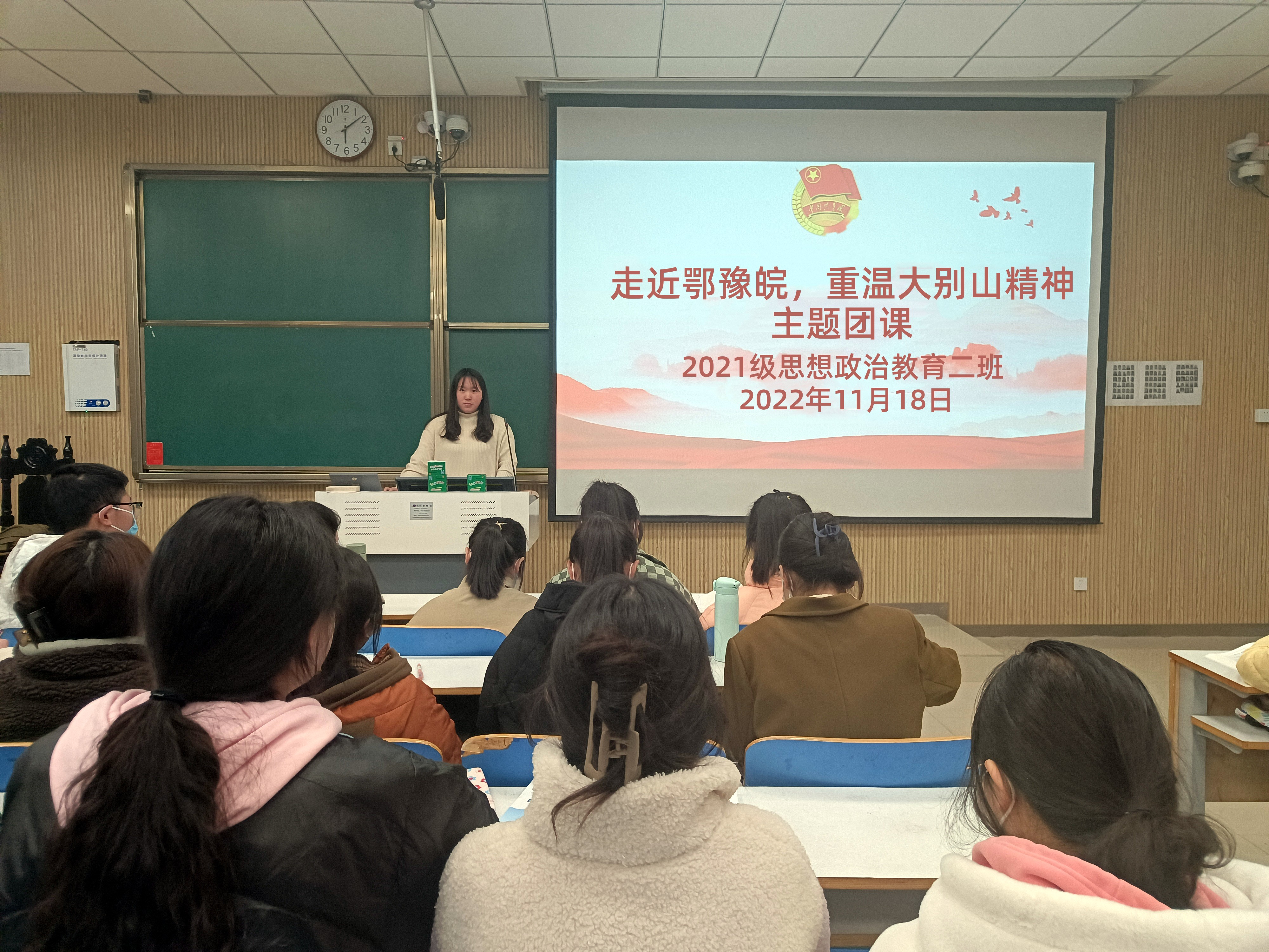 11月18日下午,WilliamHILL中国2021级思想政治教育二班在社科楼514教室召开“走近鄂豫皖,重温大别山精神”主题团课。2021级思想政治教育二班全体团员共同参加此次团课。团课由团支书王婧欣主持。