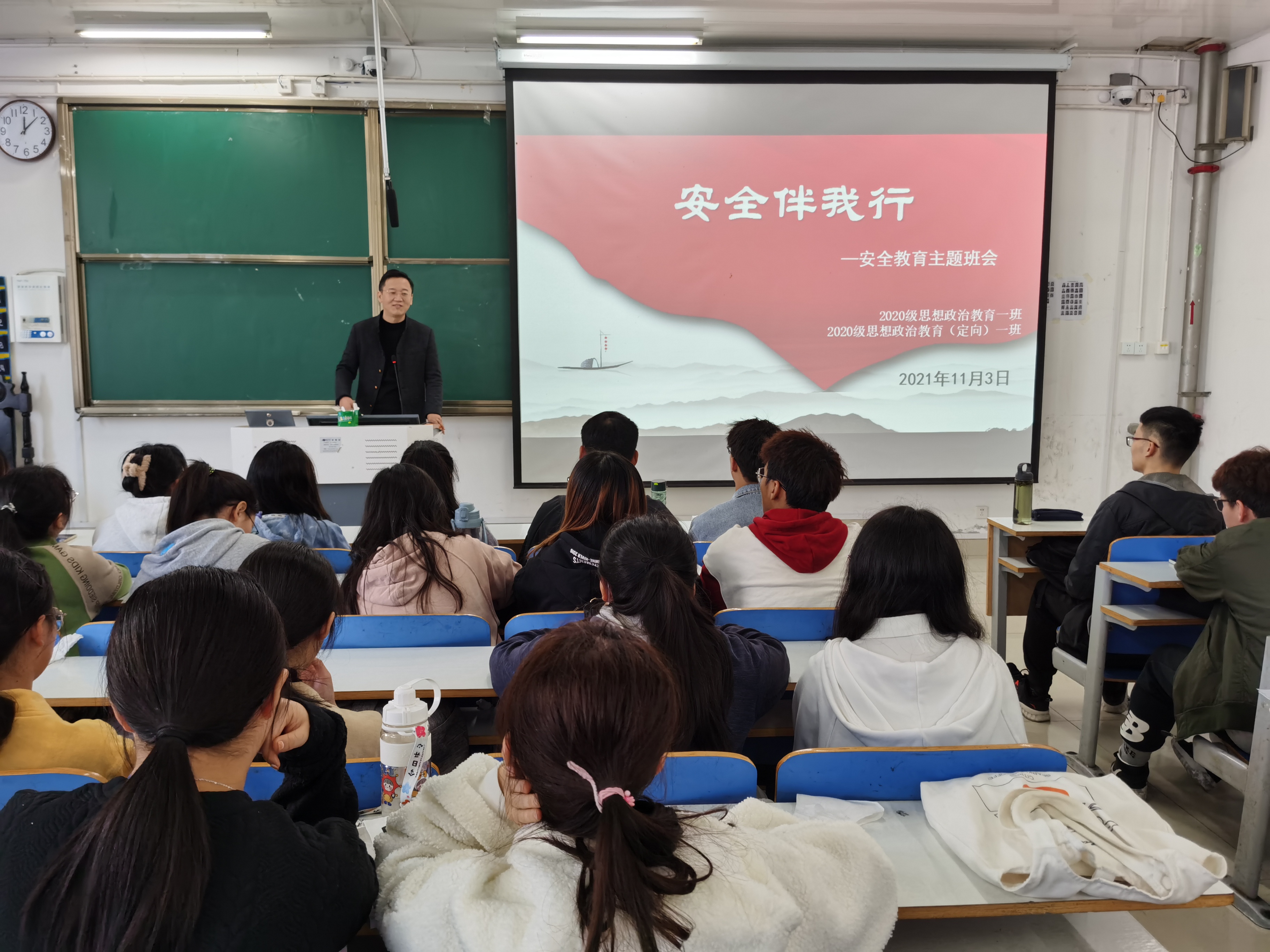 11月3日上午,WilliamHILL中国2020级思想政治教育一班、定向一班在社科楼516教室召开“安全伴我行”安全教育主题班会。辅导员曹栋及2020级思想政治教育一班、定向一班全体同学参加了本次班会。班会由辅导员曹栋主持。