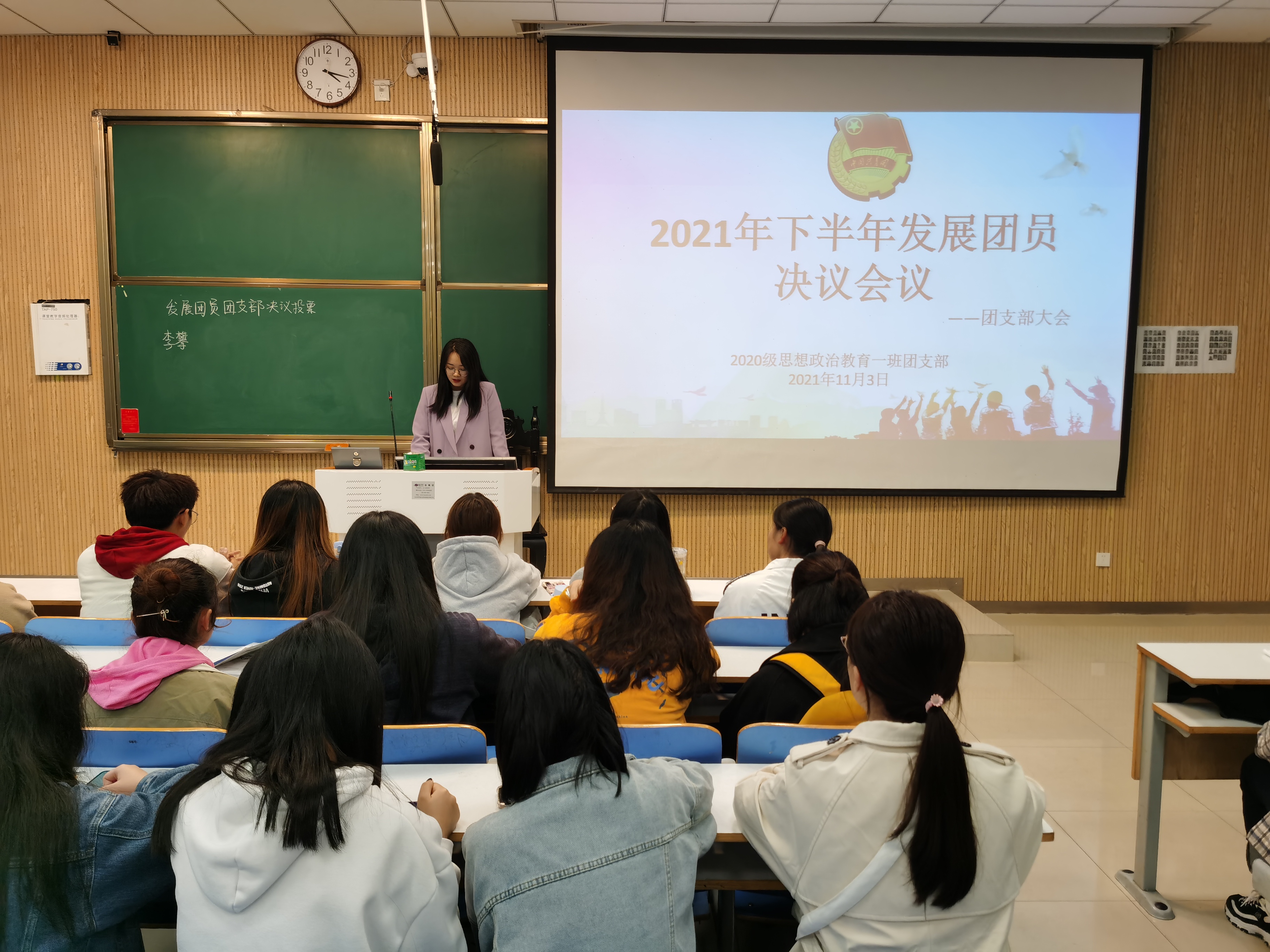 11月4日下午,WilliamHILL中国 2020 级思想政治教育一班在社科楼515教室召开“2021年下半年发展团员决议”团支部大会。2020 级思想政治教育一班全体团员参加了本次大会,大会由团支书卢茜雨主持。