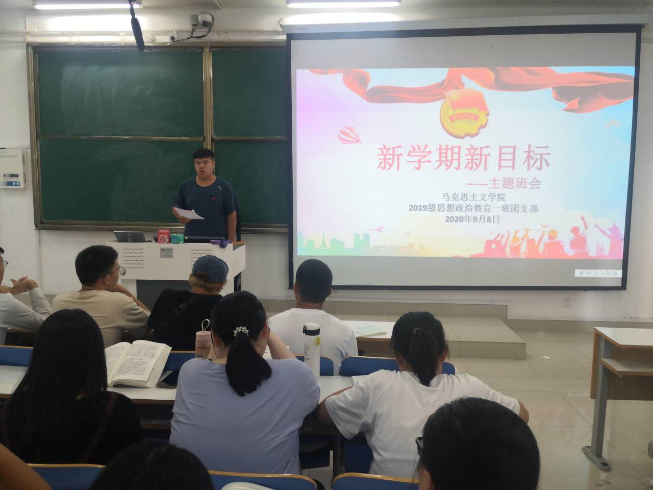会议伊始,贾子漪向同学们强调了认真学习的重要性。她指出:疫情期间,同学们的课业问题还未得到解决。在新的学期,同学们应当做出改变,力争上游,调整适应校园生活。接着,她道出本次团日活动的主要目的是“感恩教师”。活动分为三个环节,分别是:我想对老师说、写给老师的纸条、合唱歌曲“感恩的心”。最后,由王民部署本周工作安排。活动在欢声笑语中结束。