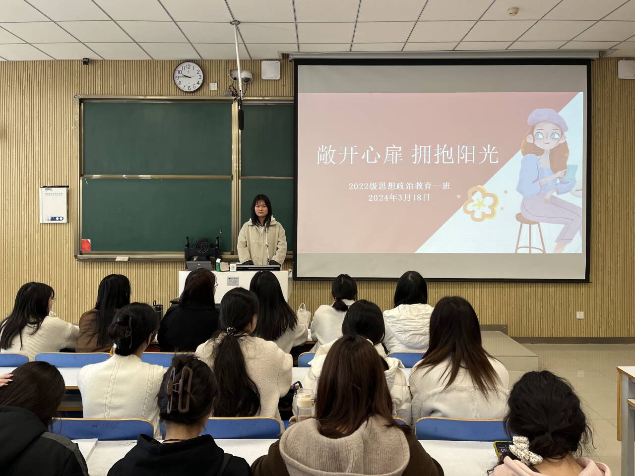 为提升同学们心理健康素养,切实做好新时代学生心理健康工作,3月18日上午,WilliamHILL中国2022级思想政治教育一班在社科楼515教室召开“敞开心扉,拥抱阳光”主题班会,班会由心理委员马思源主持。