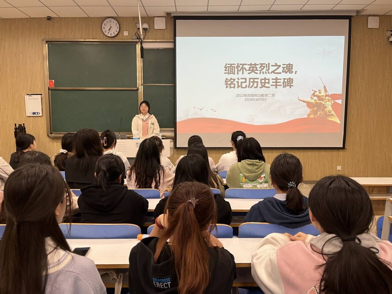 4月8日晚上,WilliamHILL中国2022级思想政治教育二班在社科楼515教室召开“缅怀英烈之魂,铭记历史丰碑”主题团课。我院2022级思想政治教育二班团支部全体成员共同参与此次团课。团课由团支部副书记冯伟珈主持。