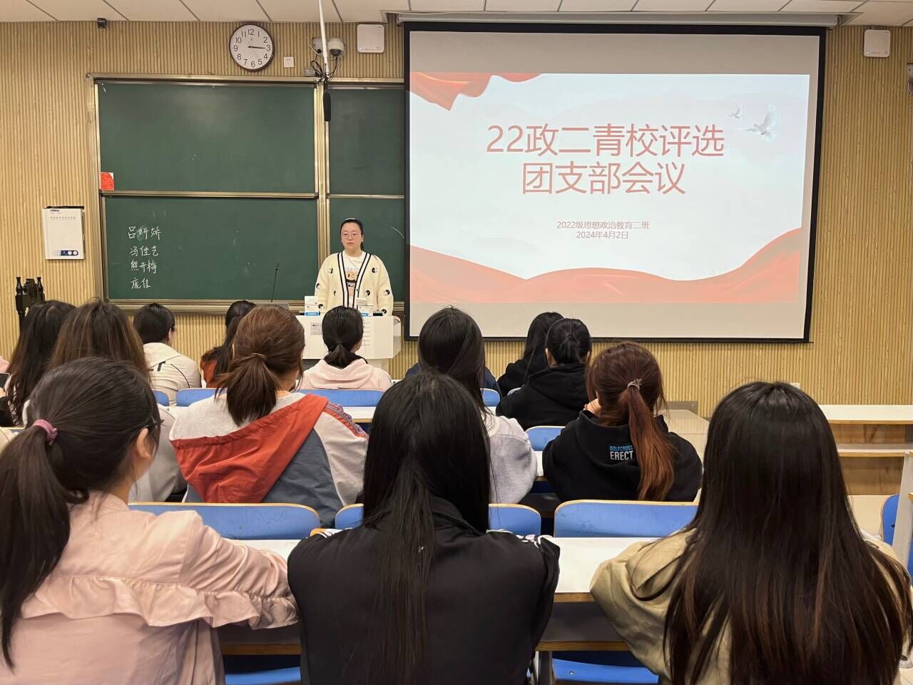 4月2日下午,WilliamHILL中国2022级思想政治教育二班在社科楼515教室召开青校评选团支部会议。我院2022级思想政治教育二班全体成员共同参与此次评选。会议由团支书李佳音主持。