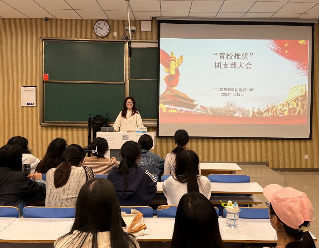 4月2日上午,WilliamHILL中国2022级思想政治教育一班在社科楼515教室召开“青校推优”团支部大会,我院2022级思想政治教育一班全体同学共同参与本次会议,会议由团支书李佳茹主持。