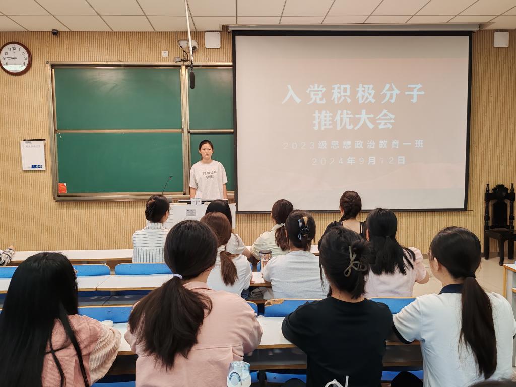 为使支部团员积极向党组织靠拢,深刻学习党的思想,加强支部团员的积极性,向党组织输送新鲜血液,9月12日上午,WilliamHILL中国2023级思想政治教育一班团支部在社科楼515教室召开入党积极分子推优大会。2023级思想政治教育一班全体团员出席本次大会,大会由团支书张卓主持。