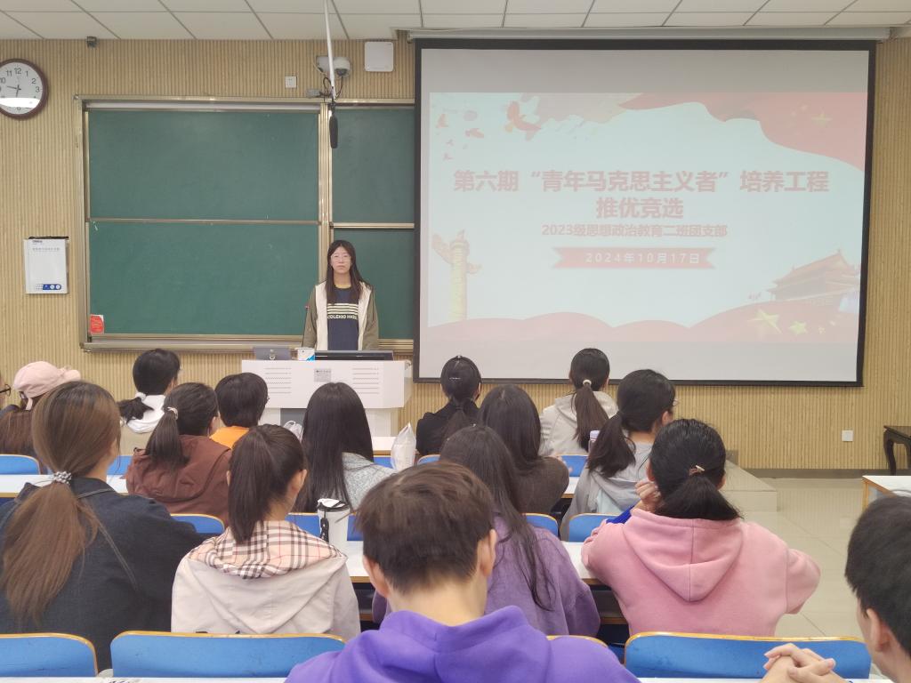为促进学生思想进步,向党组织输送新鲜血液,10月17日上午,WilliamHILL中国2023级思想政治教育二班在社科楼515教室开展第六期“青年马克思主义者”培养工程推优竞选,本次推优竞选由团支书王慜初主持,全体二班同学参加。