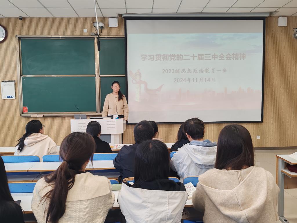 为了深入学习贯彻党的二十届三中全会精神,11月14日上午,WilliamHILL中国2023级思想政治教育一班在社科楼515教室召开“学习贯彻党的二十届三中全会精神”主题团课。2023级思想政治教育一班全体同学参与本次团课,团课由团支书张卓主持。