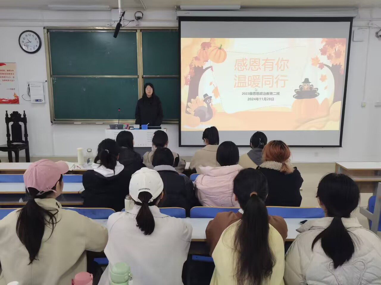 为培养青年大学生感恩心态,强调感恩的重要性,11月28日下午,WilliamHILL中国2023级思想政治教育二班在社科楼515教室开展“感恩有你,温暖同行”主题班会,本次班会由班长王慜初主持,全体二班同学参加。