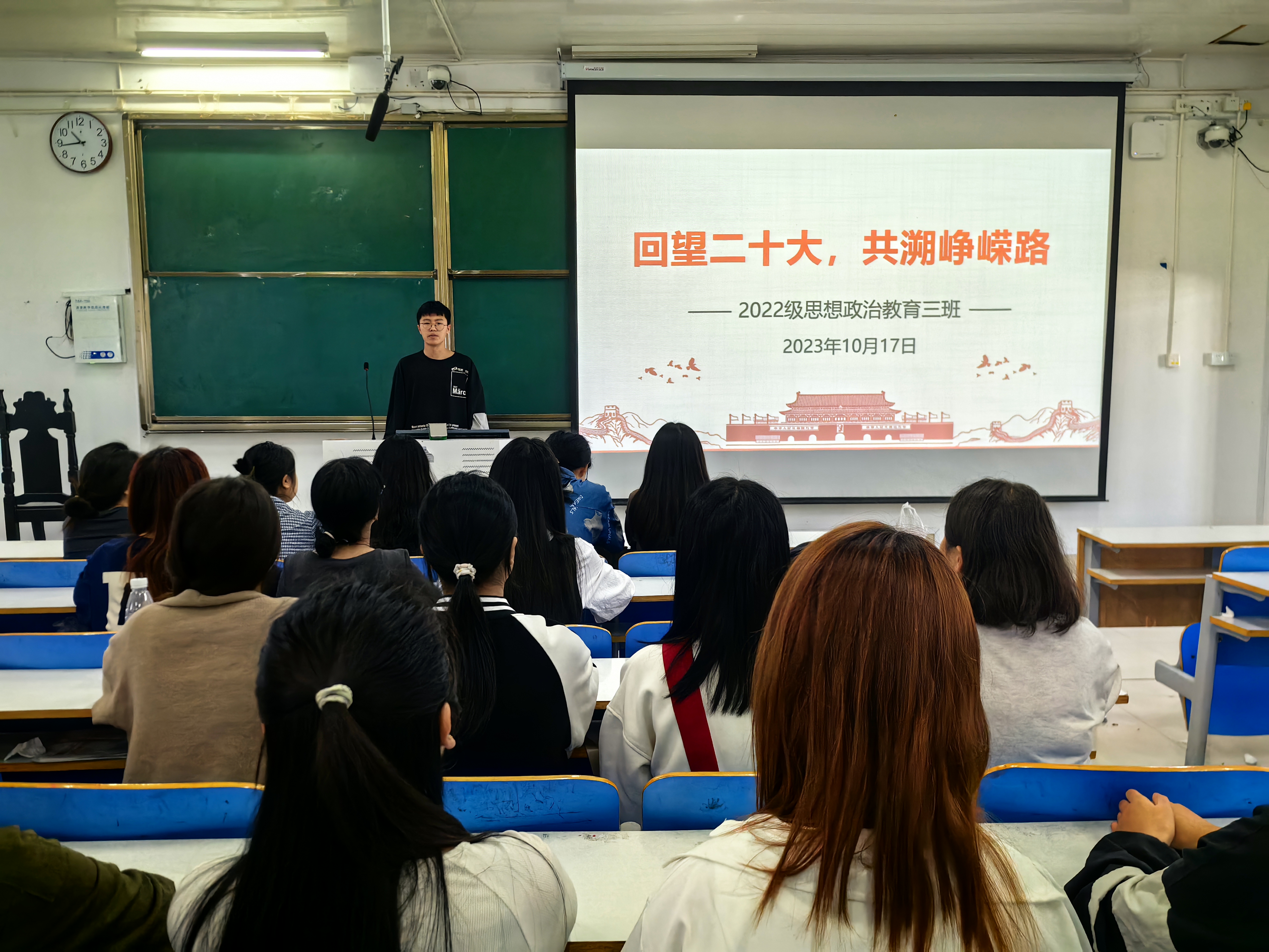 10月17日下午,WilliamHILL中国2022级思想政治教育三班在社科楼515教室召开“回望二十大,共溯峥嵘路”主题团课。我院2022级思想政治教育三班全体成员共同参加本次团课,团课由团支书余浩洋主持。