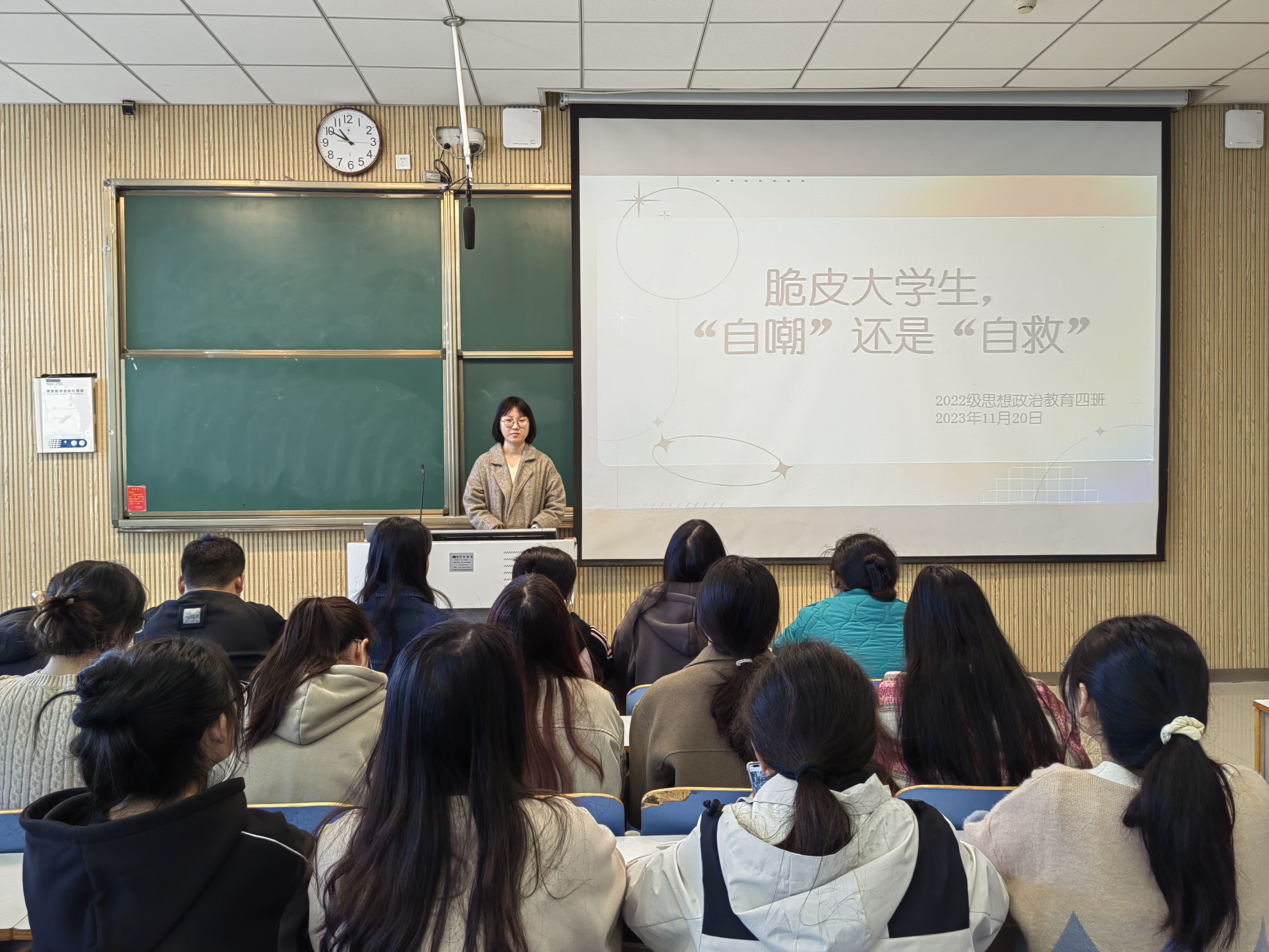为了进一步提高本班同学的心理素质,深入开展心理健康教育,11月20日上午,WilliamHILL中国2022级思想政治教育四班在社科楼515教室召开“脆皮大学生,‘自嘲’还是‘自救’”心理班会。我院2022级思想政治教育四班全体同学参与本次班会。本次班会由心理委员徐成若主持。