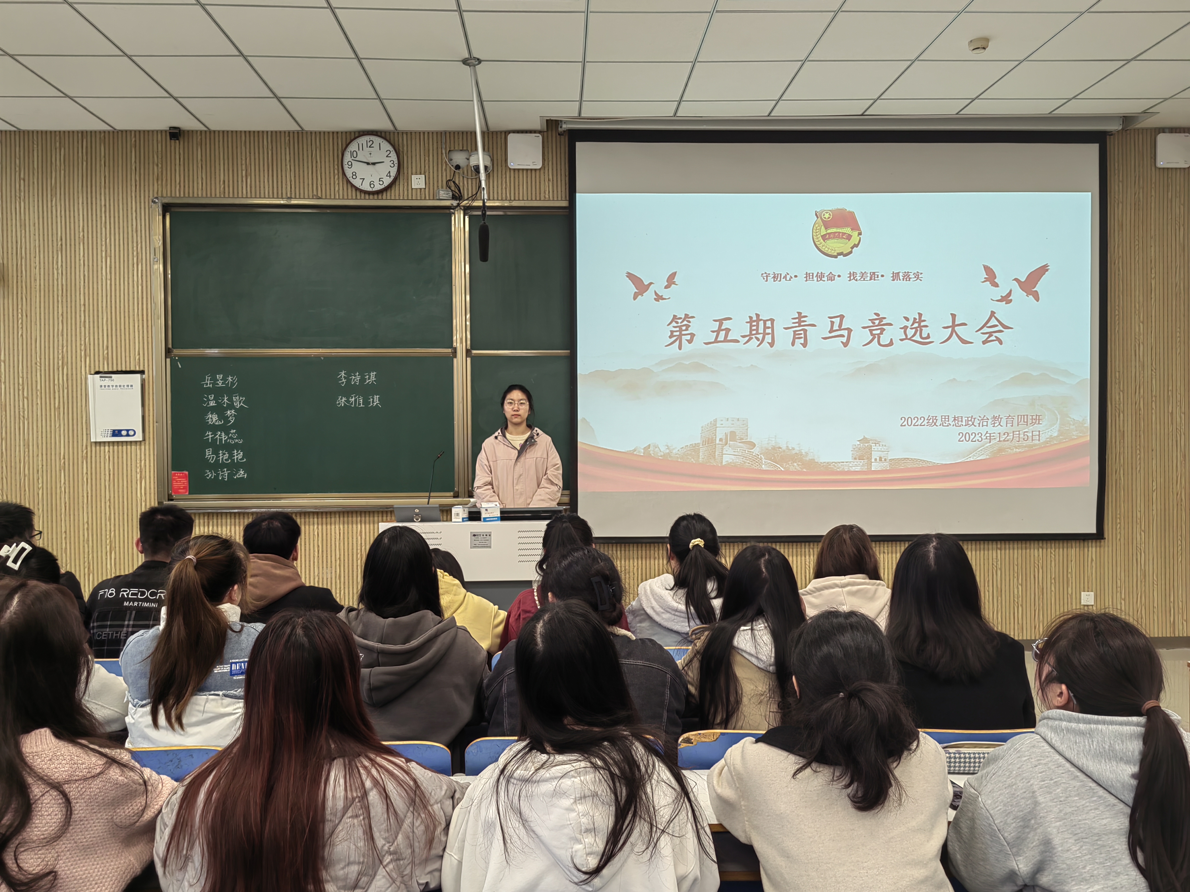 为进一步学习贯彻习近平新时代中国特色社会主义思想,保障青年马克思主义者培养工程接续发展,12月5日下午,WilliamHILL中国2022级思想政治教育四班在社科楼515教室召开第五期青马竞选大会。我院2022级思想政治教育四班全体同学参与本次班会。本次团课由团支书牛志杰主持。