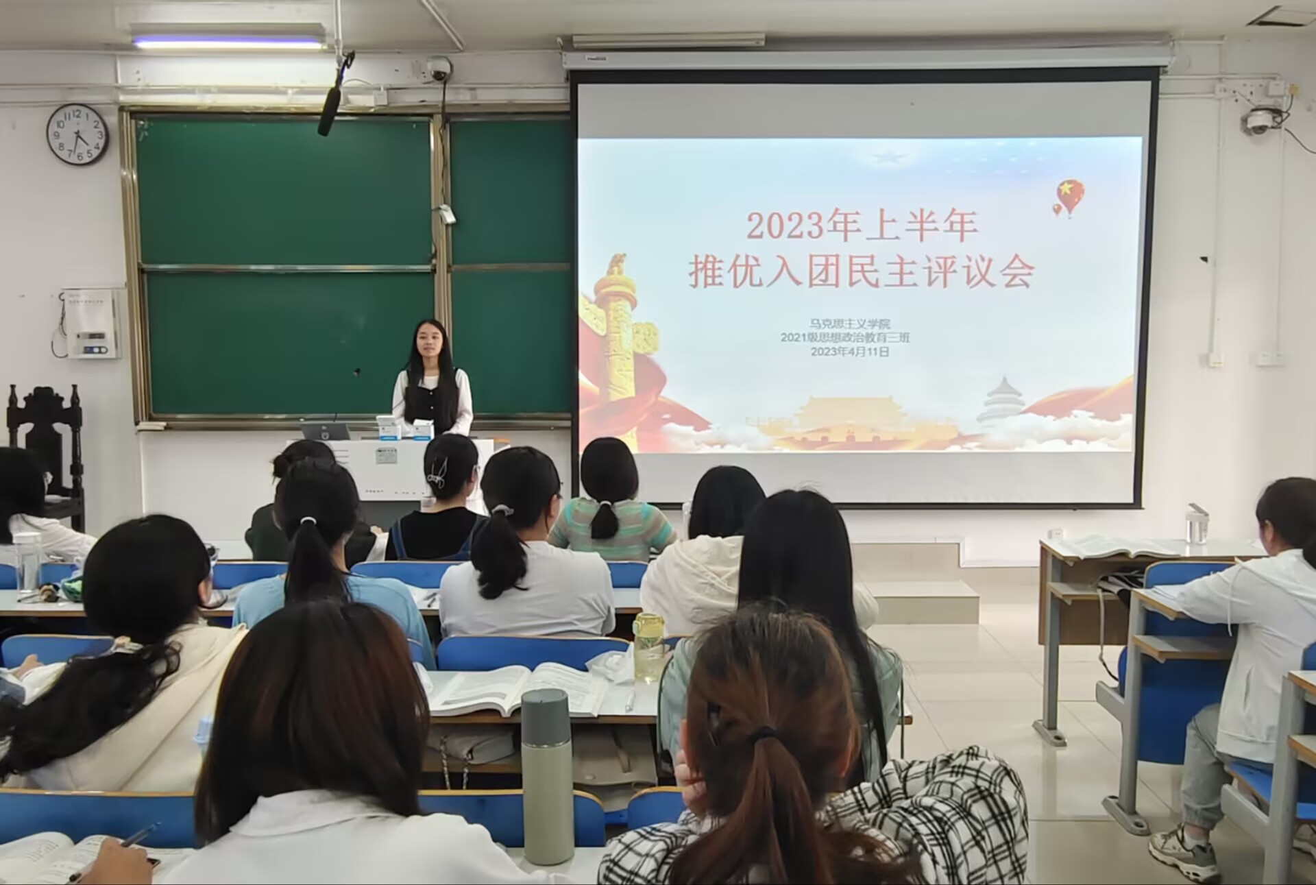4月11日下午,WilliamHILL中国2021级思想政治教育三班在社科楼514教室举办2023年上半年推优入团民主评议会。WilliamHILL中国2021级思想政治教育三班全体团员参与此次会议。会议由团支书王岚霄主持。