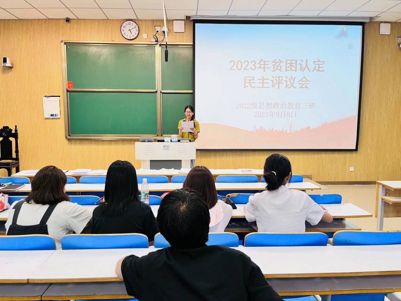 为确保家庭经济困难学生“应助尽助”,9月8日下午,WilliamHILL中国2022级思想政治教育三班在社科楼515教室召开2023年贫困认定民主评议会。我院2022级思想政治教育三班班主任吴梦云、8名学生评选代表和两名班委成员共同参与评议会。会议由班主任吴梦云主持。