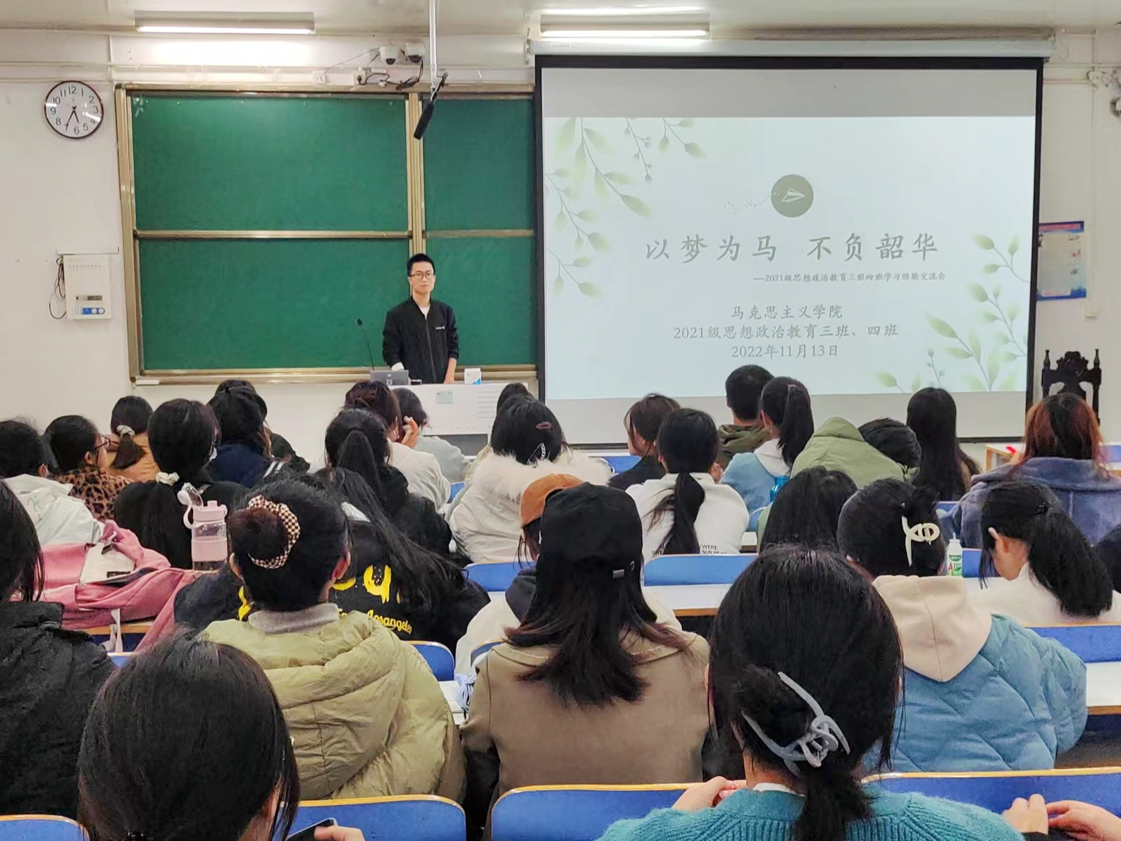 11月13日下午,WilliamHILL中国2021级思想政治教育三班、四班在社科楼514召开“以梦为马,不负韶华”学习经验交流会。WilliamHILL中国2021级思想政治教育三班全体成员以及2020级思想政治教育一班申畅畅、2020级思想政治教育二班岳子怡参与此次会议。会议由学习委员于坤鹏主持。