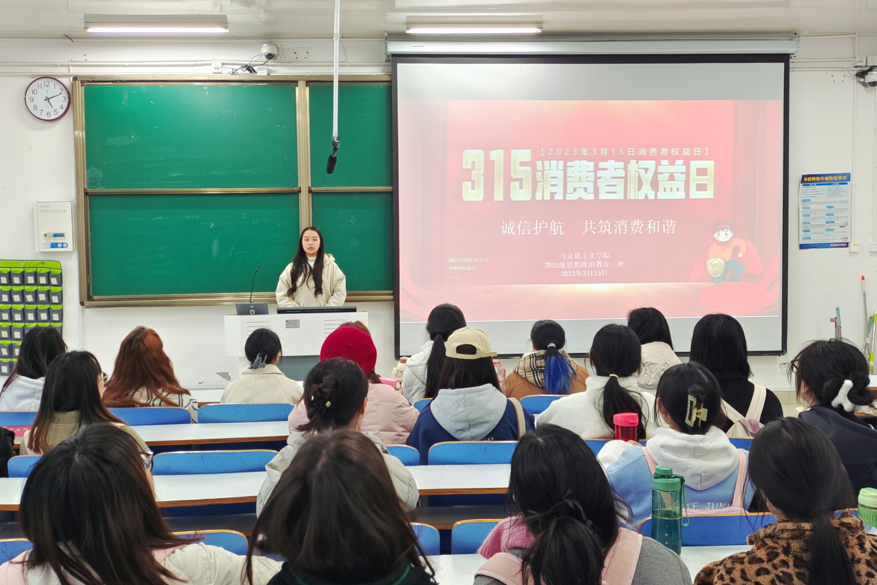 随着全国消费水平提升,消费结构不断升级,消费侵权事件必须引起广大关注。会议伊始,王岚霄对参会人员进行清点。她指出“3月15日是国际消费者权益日”,此次会议目的是,提高大家的反诈意识、维权意识和能力。接着,王岚霄从设立宗旨和工作主要内容两方面向大家介绍了国际消费者权益日的内涵和作用。随后,她结合实际列举了网络购物中常见的消费陷阱并带领大家观看了网络消费侵权与维权的相关视频,并指出我们在诚信消费的同时也需要主动维护个人权益。接着,她带领大家一同学习了具体的维权措施,告诫大家牢记维权时限,抵制虚假宣传和虚假维权。最后,同学们对本次班会的心得体会进行讨论和分享,会议在掌声中拉下帷幕。