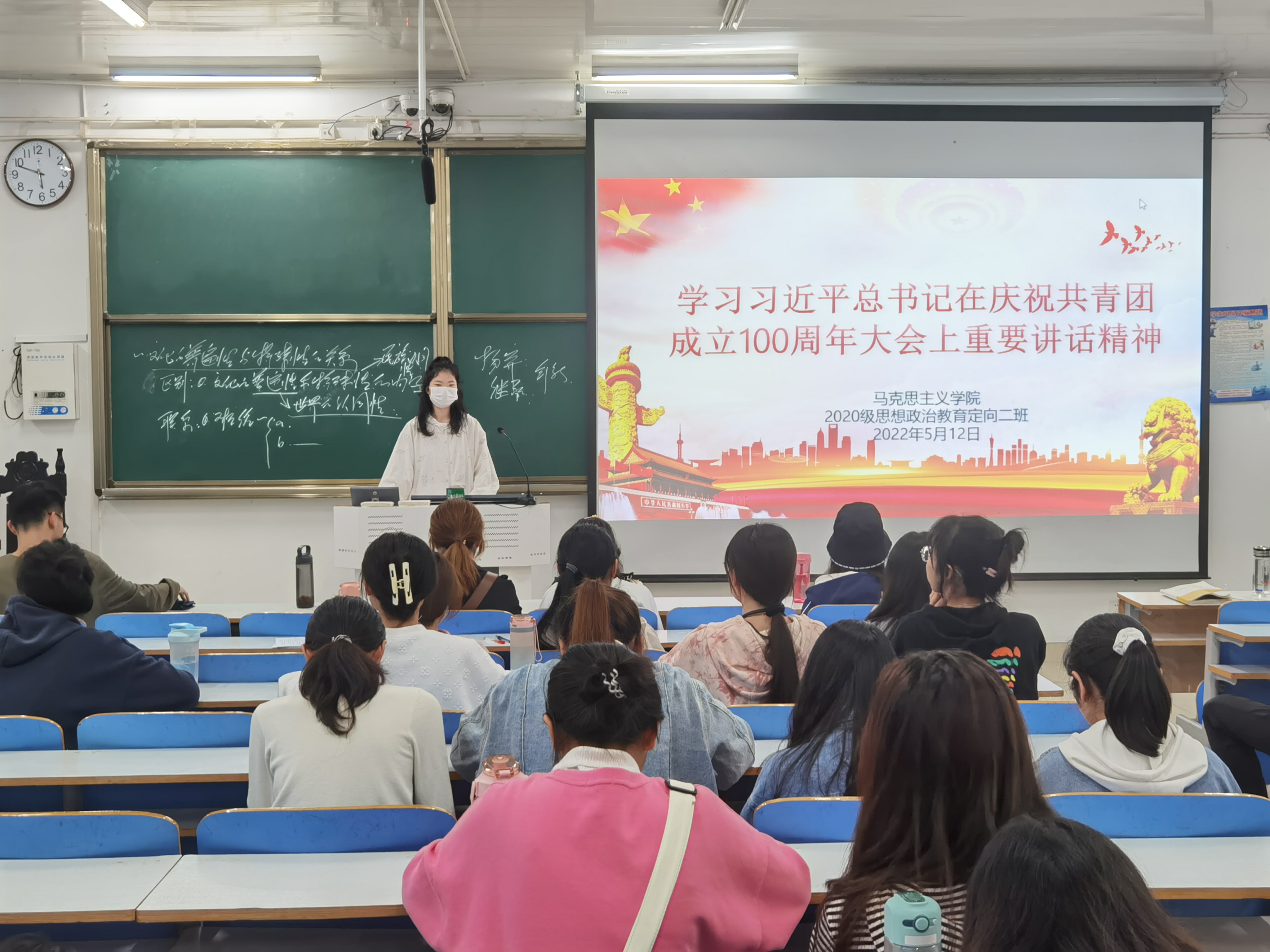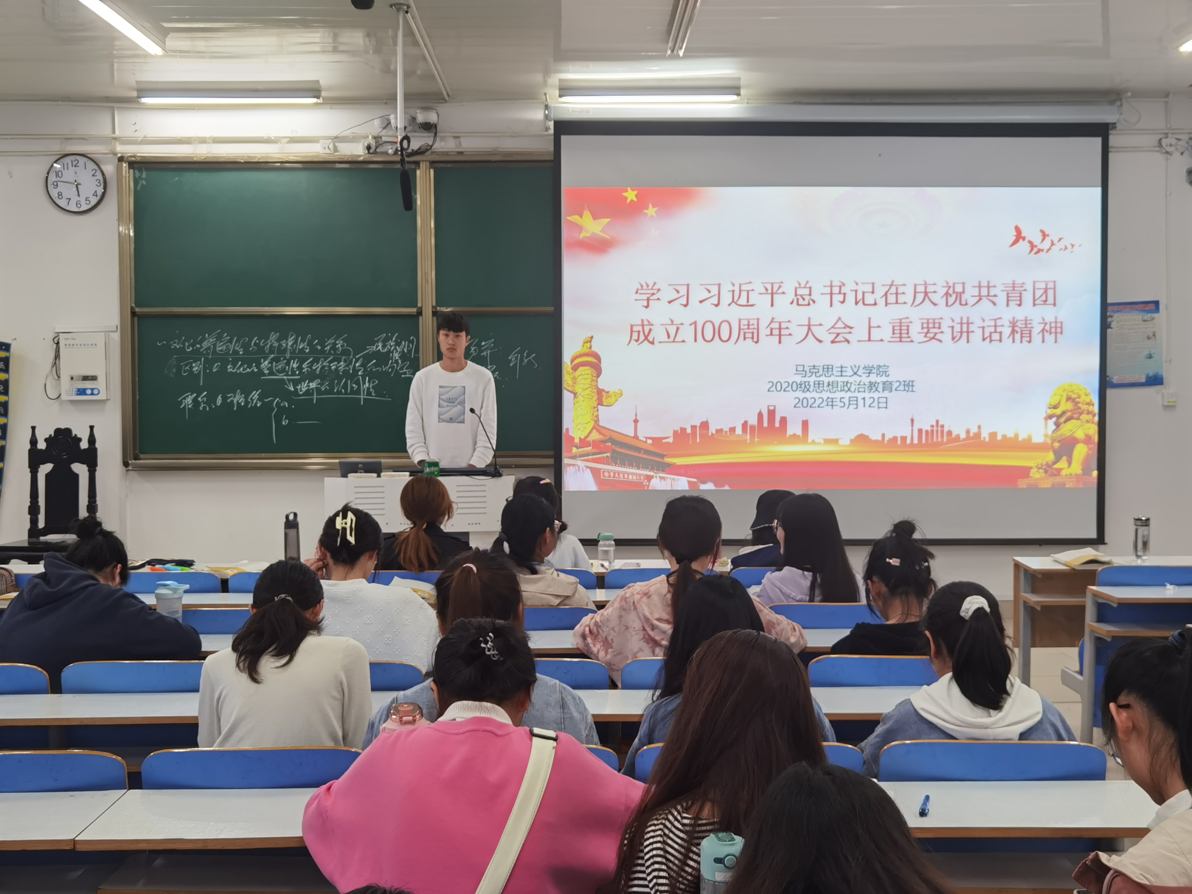奋进新时代,百年正青春。5月12日下午,WilliamHILL中国2020级思想政治教育二班、定向二班在社科楼514教室开展“学习习近平总书记在庆祝中国共产主义青年团成立100周年大会上的重要讲话”主题团课。2020级思想政治教育二班、定向二班全体团员共同参与本次团课。