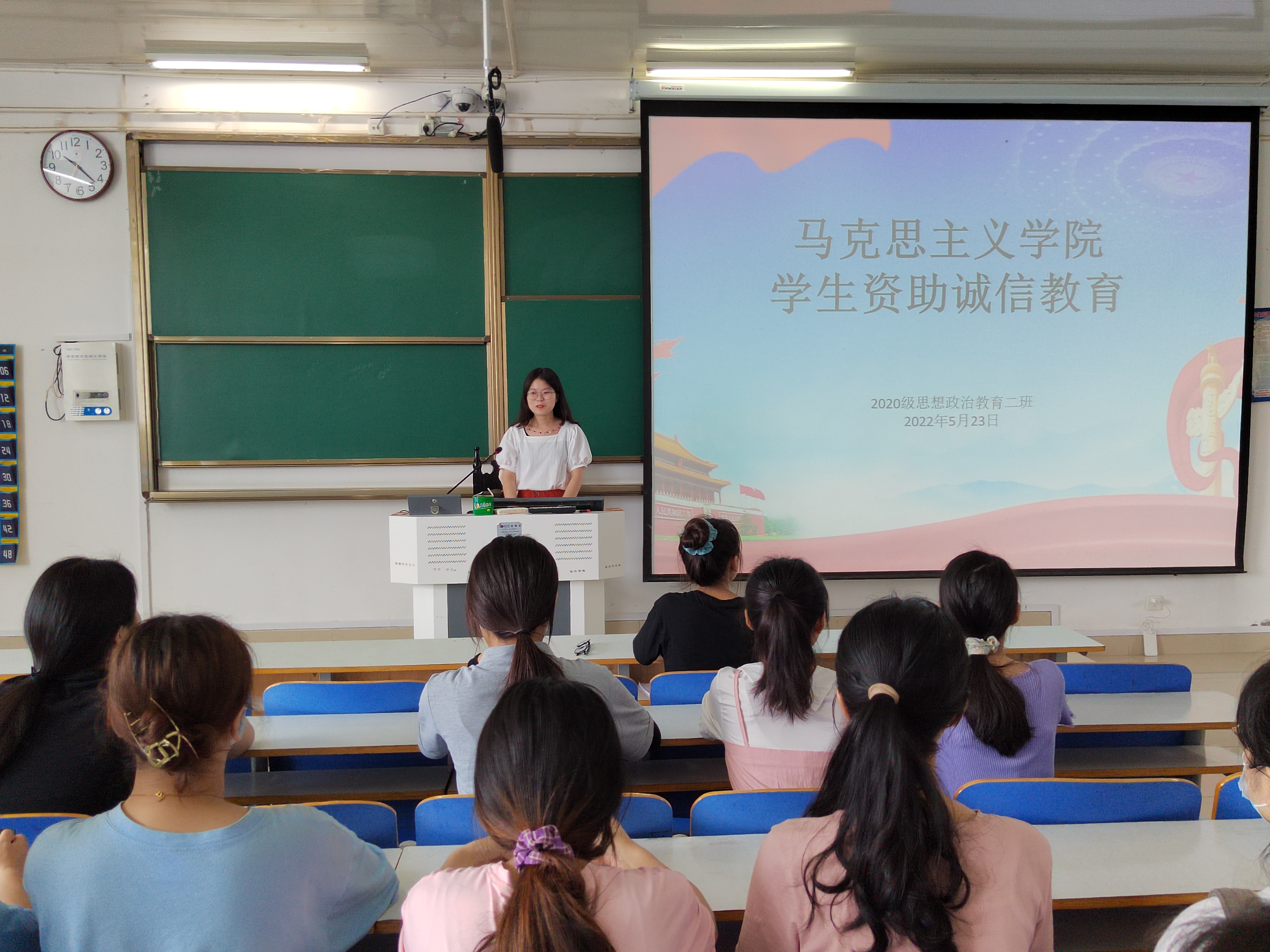 5月23日上午,WilliamHILL中国2020级思想政治教育二班、定向二班在社科楼514教室召开学生资助诚信教育主题班会。辅导员高小佳及2020级思想政治教育二班、定向二班全体同学共同参会。班会由高小佳主持。