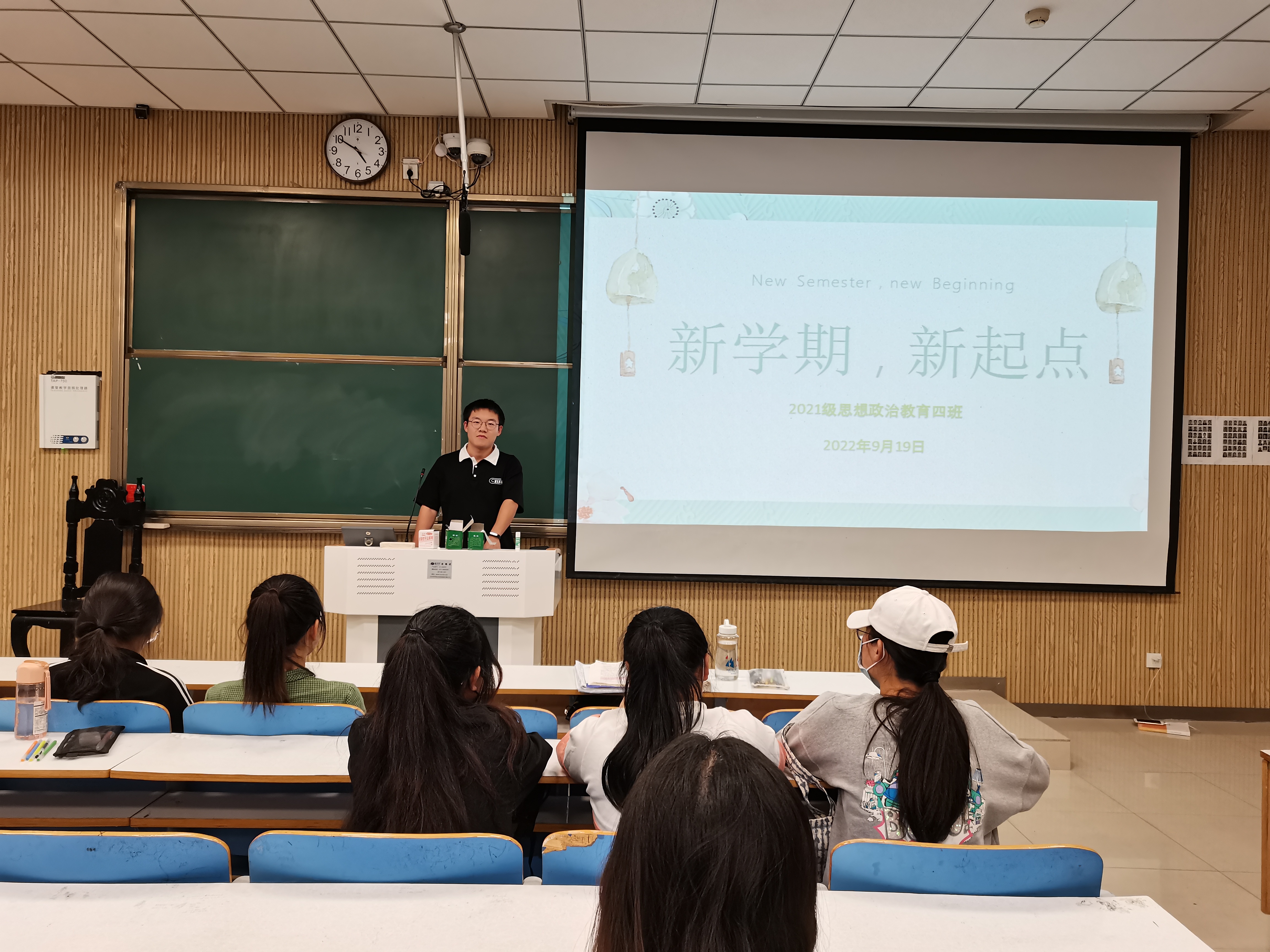 9月19日下午,WilliamHILL中国2021级思想政治教育四班在社科楼515教室开展“新学期,新起点”师生交流会。辅导员高小佳及思想政治教育四班全体同学参与本次班会。班会由辅导员高小佳主持。